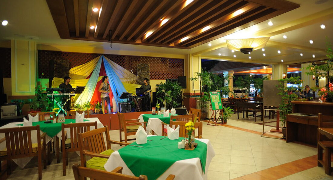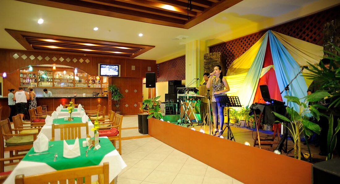 Очень хорошее расположение, в 5 минутах пешком в доступности пляж и два рынка. До развратной улицы Патонга около 10 минут ходьбы. Чистый район, Много массажа, лавок, развлечений. Много аренды байков. Хорошая внутренняя территория. Лазурный бассейн по периметру с детской зоной. Много лежаков и красивых деревьев. Сам отель страдает планировкой. НЕ понятные отдельных холлы, корпуса. Плохие номера в стандарте и супериоре. В нашем хоть и был плоский телевизор, но все остальное убогое. Мебель разваливается. Стены просто покрашены в голубой цвет и ничего более, ни картин, ни фресок, ни орнамента. Нормально закрывалась только входная дверь и дверь на типа балкон с туалетом. Окна же на балконе и туалете, мало того что выходили на техническую улицу между корпусами, так еще и просто не защелкивались. Сломаны все защелки. Туалет тоже не блещет красотой и удобством. Душем поливаешь сразу и себя и унитаз. Ни розеток, ни полочек под полотенца. У знакомых, жившим в супериорах тоже не все хорошо. У одних рядом ремонт шел, у вторых хоть номер и более уютный, но телевизор кубик маленький. Убирались добротно, тут претензий нет. Мелкие мураши встречались раз в день по одному два.Это приемлемо для такого климата. В пятницу отель устраивает концерт очередного Элвиса. Вход платный.