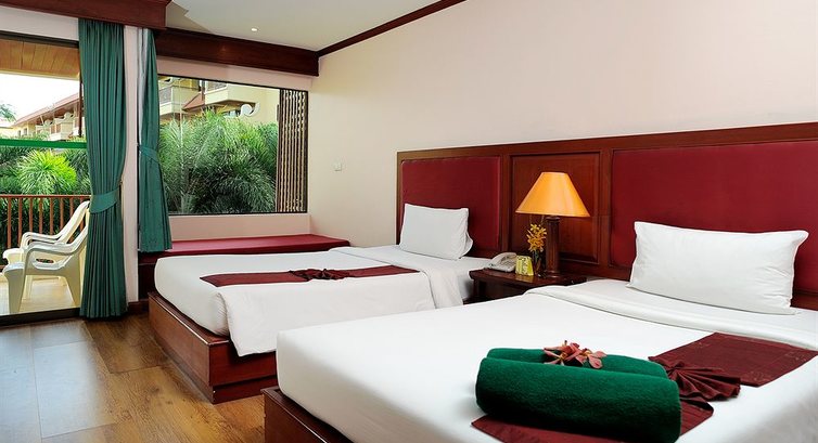 Baumanburi - это маленький оазис на Патонг Бич. Отличная зеленая территория. Близко до пляжа. Единственное - советую брать номера Deluxe Room / Double. Так как Superior Room / Double находятся в первом и втором корпусе, окна выходят на шумную улицу или на переходы между корпусами и некоторые не имеют балкона. Мы жили в номере 2314 Superior Room / Double. Номер достался с балконом. Вид на соседний отель и улицу. Шум особо нам не мешал, так как мы заходили только переночевать после интересных прогулок по острову. Нашим друзьям достался номер 1305 без балкона и окно выходило как раз на Хард Рок Кафе из которого просто грохочет музыка до полуночи. На следующий день, после доплаты 130$ за 10 ночей их переселили в номер 4507 Deluxe Room / Double с двумя огромными кроватями, которые считаются односпальными. Спать можно и втроем на одной. Балкон и окно выходят на очень красивую территорию отеля.