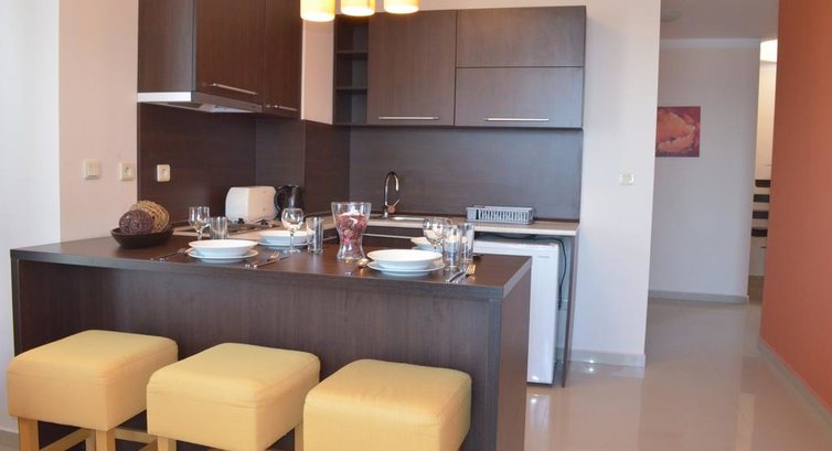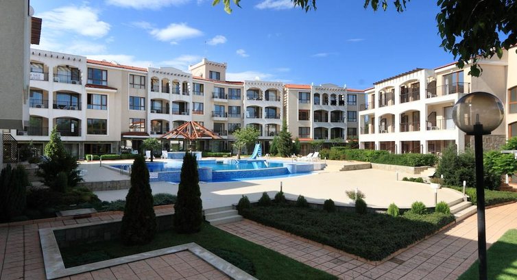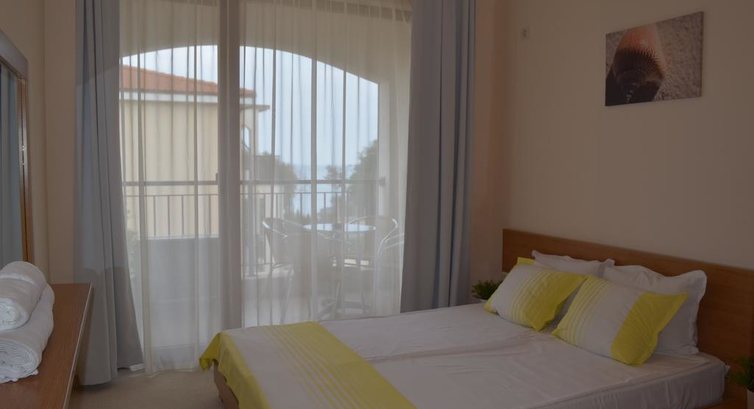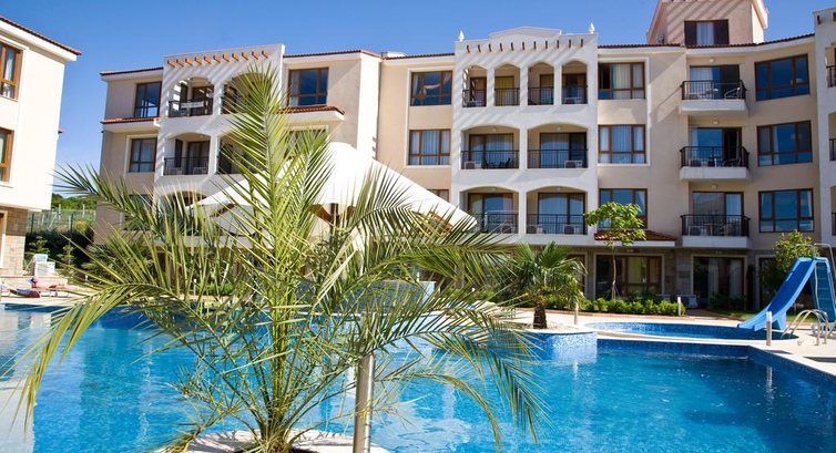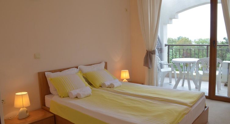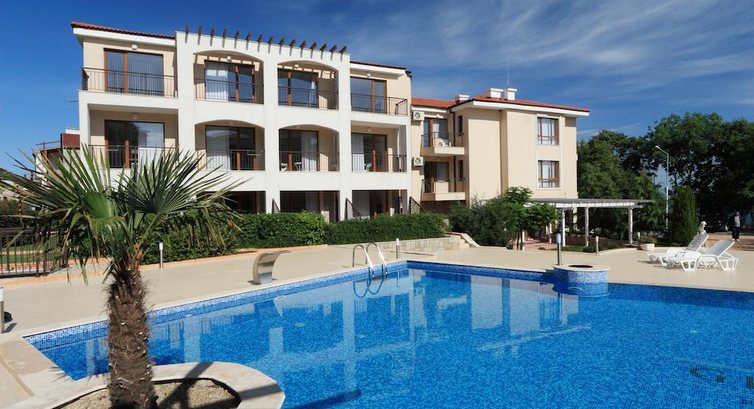 Отдыхали компанией из трёх семей , все с детьми. Не смотря на то, что все заказывали одинаковый тип апартаментов , номера были разными. Но все хороши. Вся техника (чайник, тостер, электроплита, холодильник, утюг, микроволновка , стиральная машина ) присутствовала и была в рабочем состоянии. У нас был самый обыкновенный номер - кухня совмещённая с гостиной и спальня. У одних наших друзей был двухэтажный номер ( спальня, сан. узел и балкон на втором этаже ) , у других стандартный номер , но с большой террасой, на которой мы любили собираться по вечерам. В номерах регулярно убирались и меняли полотенца. Территория отеля небольшая (как и у всех остальных отелей Болгарии), но чистая и ухоженная .На территории хороший бассейн - большой для взрослых и рядом маленький для детей с горкой . Бассейн каждый вечер добросовестно чистили. Вокруг бассейна лежаки и большие зонтики.