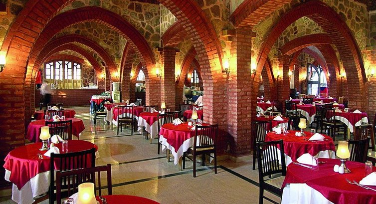 Работает по системе все включено (с 11:00 до 23:00) и завтрак + ужин (можно без проблем ходить на обеды, оставаясь незамеченным, но периодически на входе стоит кто-то из персонала и записывает входящих в ресторан). Меню каждый день меняется, но неизменно есть паста, макароны в различных соусах. Рыба, мясо - жареное, вяленое, люля-кебаб, котлетки. Так что с питанием проблем нет. Снеки (чай, булочки) дают с 11:00 в баре у бассейна.