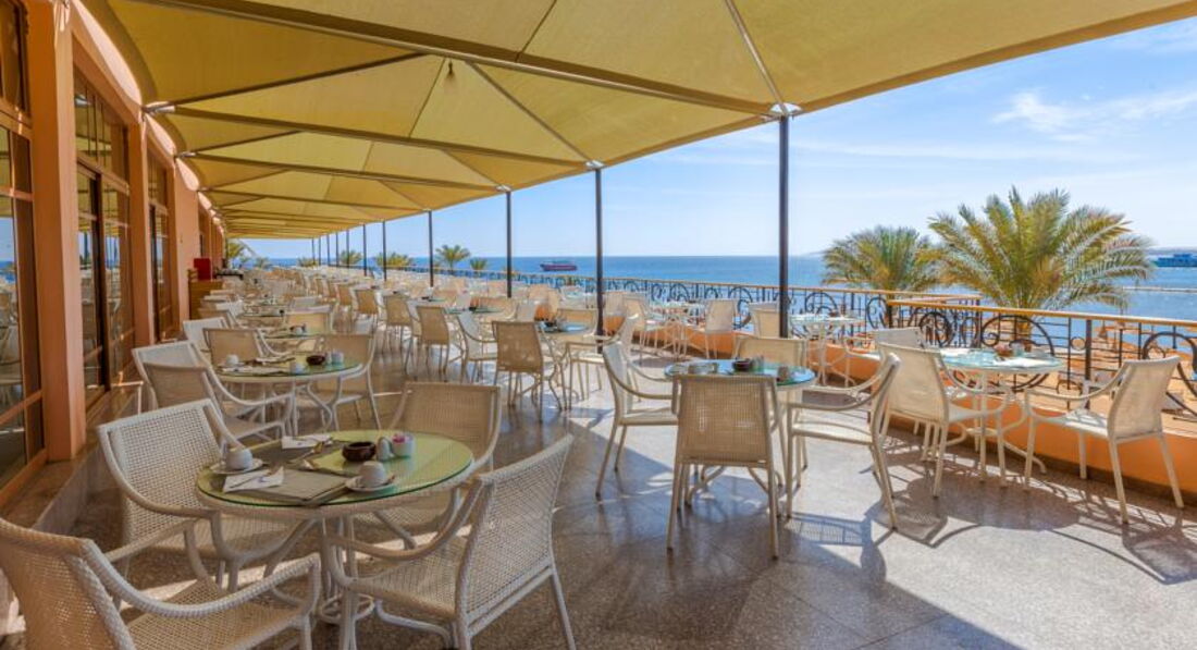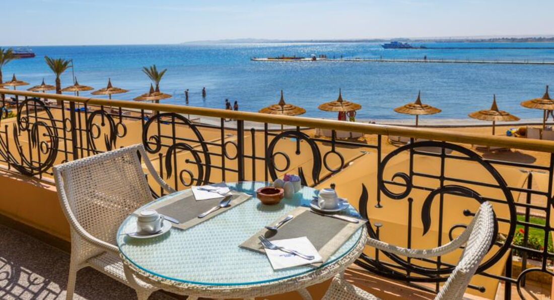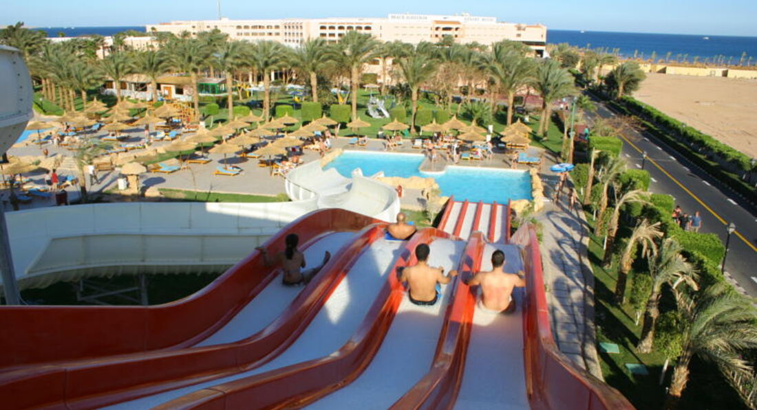 Отель выбирали для отдыха семьей,сыну десять лет,поэтому хотели первую линию,море с рифами,хорошее питание и конечно горки.Это одно из немногих мест в городе по адекватной цене,где все это можно получить.В отель попали утром около девяти,заселяли около часа,чаевых никто не выпрашивал,за завтрак по итогу опоздали,но как-то пережили,номер дали в главном корпусе,вид из окна не очень впечатлил,но мы ночь не спали ,плюс все было в рабочем состоянии,поэтому решили ничего не менять,хотя думаю,что не отказали бы.Пляж рядом ,песчаный,лежаки в лучших местах надо занимать заранее,но в общем свободные были всегда.Вход в море удобный,вода чистейшая,нам больше нравилось купаться с пирса,кораллы есть,рыбок много,ската и мурену удалось заснять под водой несколько раз,в целом как для городского отеля подводный мир очень даже ничего.Горки сыну понравились,стыки более менее ровные,синяков не было,бассейны чистят регулярно.Днем на анимацию не ходили,просто очень жарко,на пляже после 12 и до 16 лучше не находиться.Питание в целом не плохое,нам всего хватало и ребенка всегда было чем накормить,еду описывать не буду,скажу лишь,что морепродуктов нам конечно не хватало,но за ними можно съездить в город на рыбный рынок и купить там больших креветок,около 10 долларов за кг или кальмаров по 6-7,надо торговаться,на набережной в кафе очень вкусно готовят суп из разных морепродуктов,конечно ничего подобного в отеле нет.Контингент отдыхающих разный,русскоязычных из разных стран много,арабов достаточно,но они как-то не особо напрягали.Обслуживание нормальное,никакого хамства или предвзятости со стороны персонала мы не замечали,ну может кого-то из своих могут быстро обслужить без очереди.{удалено модератором: несанкционированная реклама} Интернет кстати в отеле нормальный,доставал даже в номер.Вечером нам скучно тоже не было,можно сходить на представления или шоу после ужина,конечно больше напоминает самодеятельность,но ребята стараются и все было достаточно позитивно.Вывод могу сделать такой,что отель своих денег однозначно стоит,нам удалось отлично загореть и отдохнуть,набраться положительных эмоций,отель вполне можно посоветовать друзьям и знакомым.
