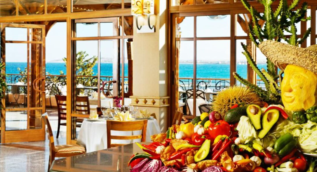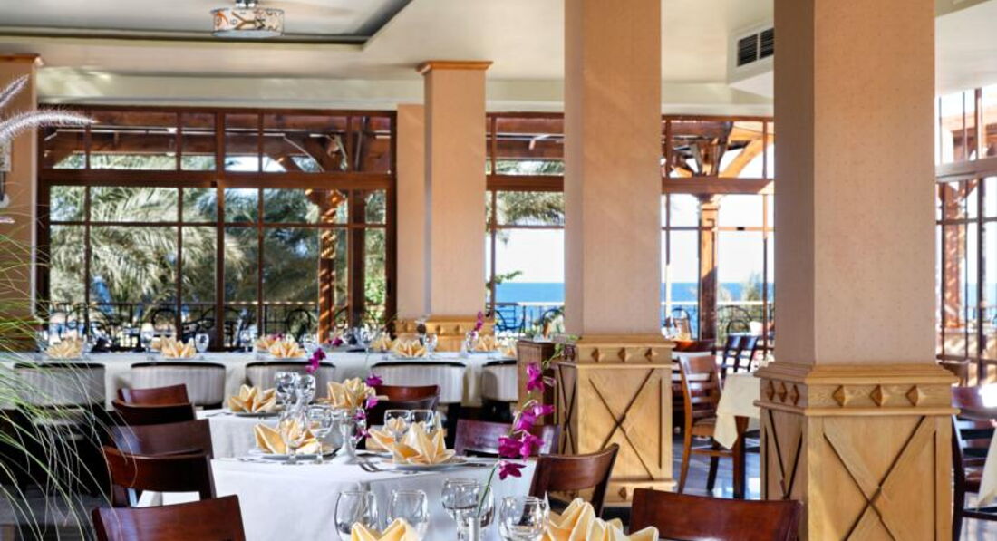 Бари та ресторани: головний ресторан розрахований на 350 осіб (критий, з кондиціонером, дитяче меню, дієтичне меню, дитячі стільці); лобі-бар; бар біля басейну; бар на пляжі; диско-бар та ін.3 ресторани A la Carte - італійська, рибна, барбекю - платні, за попередньою резервацією.