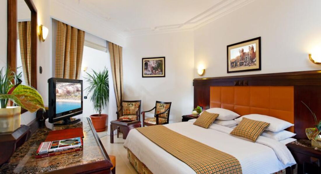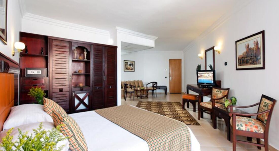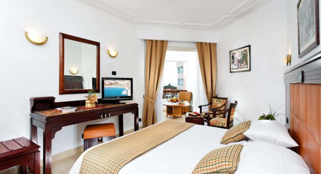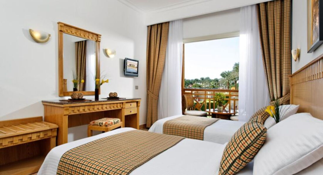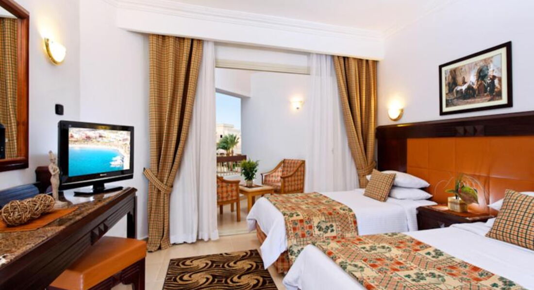Отель в общем не плохой,нам его друзья посоветовали,плюс сеть известная и цена показалась приемлемой,а самое главное ранний прилет и поздний вылет обратно,что нам раньше вообще как-то не попадалось,один день всегда теряли точно.Заселили нас быстро,свободные номера в наш заезд как я поняла были.Номер нам дали в главном корпусе,очень удобно и все рядом.Внутри конечно ничего особеного,но все аккуратно,кровать нормальная,мебель добротная,сантехника рабочая,кондиционером не пользовались,только уборщик включал его зачем-то во время уборки.Пляж рядом,мест всем хватало,нам например было не так важно,на первой мы линии загораем или нет.Вход в воду удобный,но обувь лучше надеть,так как обломок ракушки или острый камешек может принести всегда.Зона для купания ограничена,море конечно прозрачное,но смотреть под водой особо нечего,за этим надо ехать в другое место,мелкие цветные рыбки конечно есть всегда.В отеле в общем есть чем заняться, волейбол,минифутбол,аквааэробика это все есть,да и в соседние отели всегда можно сходить,посмотреть,что там у них.За питание ставлю твердую четверку.Нам реально всего хватало,было из чего выбрать.Макароны,рис,картошка,овощи в разном виде,говядина,курица есть всегда,ну может фруктов хотелось по-больше и нормального нашего пирожного вечером,у они все какие-то ватные и приторные.Алкоголь муж взял с собой,из отельного пили только пиво,не знаю,пару градусов максимум как показалось,но если холодное,то вкусное.Рядом с отелем ничего интересного нет,надо ехать в город на такси.Лучше чуть отойти от отеля и поймать на улице,так дешевле,да и рассчитываться лучше местными фунтами ,так тоже выгоднее.Магазины нас особо не интересовали,поэтому кроме набережной ничего интересного для себя не увидели,удивила только проверка при входе.На встречу с гидом не ходили,назначили утром следующего дня на 9 утра,блин очень не удобно,не хотели терять время,которого на отдыхе и так не много,тем более темнеет рано.{удалено модератором: несанкционированная реклама}