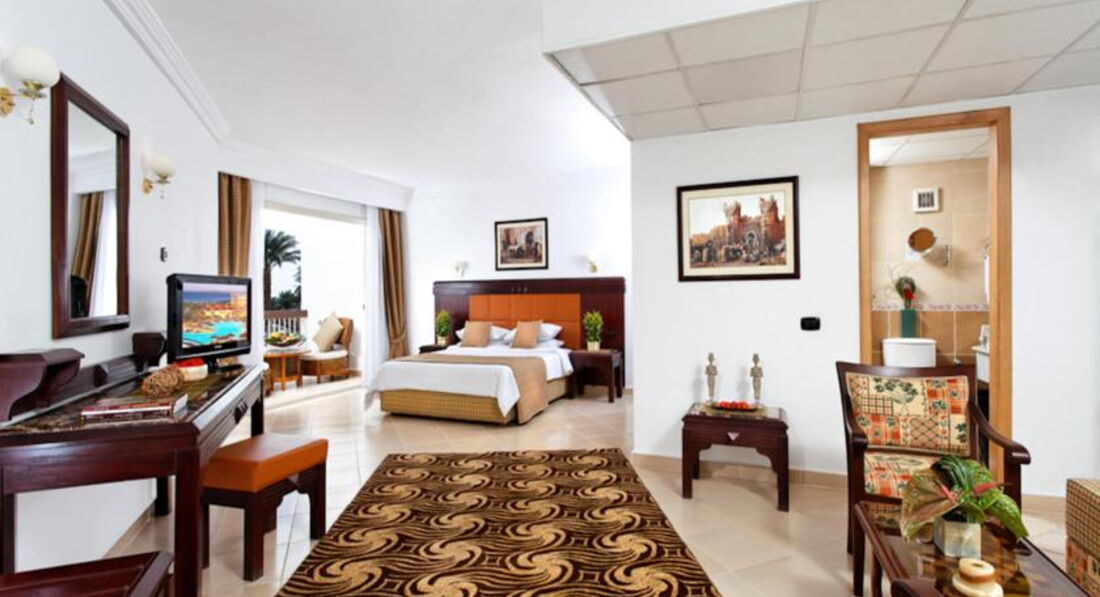 Отдыхали в ноябре с ребенком 1,3...прибыли поздно , заселили нас в номер с видом на пустыню, чайник протекал, кондюк шумел и фыркал, а холодильник целую ночь булькал и гудел и душ только на высоте 2,5 метра, помыть годовалого ребенка нереально.За 14 отпусков в Египте такой номер впервые.В жизни номера не меняла..Я решила поменять номер, на что ушло полдня следующих, поскольку на ресепшн не особо шли н уступки , не смотря на то, что я согласна была доплатить.Сначала ответ был - " ничего нет" ...после долгих уговоров и просмотра нескольких номеров мы за 60 $ получили номер с ремонтом и видом на море, все работало- это было шикарно и мне не жалко денег, жалко полдня, которые мы могли провести на море.Дальше отпуск был великолепен.Море, пляж, территория, развлечения - все супер. Правда шумно было из-за за глобального ремонта ресторанов на втором этаже, но приняли это с пониманием. По еде - ассортимент большой,ивсего хватало, единственное, что частенько было пересолено или переперчено.Например креветки были настолько перечные, что съев по 3 штуки, все горело во рту, и вкусов других блюд уже не чувствовалось, также иногда рыба и мясо, вроде вкусные, но много соли, короче , некоторые повара не дружат с солью.Также иногда в детском меню был излишек соли.Малый у меня есть все , но тут отказывался кушать и я понимала почемуНу да ладно, нашла , чем кормить. В остальном всё очень понравилось.Рекомендую отель для семей, романтических парочек и пенсионеров.