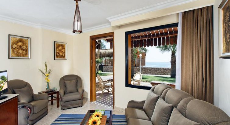 Отдыхали в Шарме первый раз, выбирали отель по принципу - бунгало+хорошее питание+море с рыбками... Ну в общем все так и вышло, за бунгало доплачивали на месте, по официальным ценам отеля. В основном корпусе жить я бы не согласилась и бесплатно - уж очень он страшный, одно слово - казарма )).. Бунгало были на выбор, выбрали на углу по дороге в ресторан, № 7003 кажется.. Из-за вида на море. То, что мимо весь отель ходит кушать, не смущало, т.к. никто не шумел. Вообще в этот отель многие едут пятый-десятый раз - в основном это те, кому за 45 и т.д. , поэтому отдых тихий и спокойный.. Не русскоговорящих практически не было, но при этом персонал в ресторане умудрялся не замечать взрослых русских, сосредотачиваясь на иностранцах и всех без исключения детях, т.е. хочешь вина, приборы, и т.д. - сходи сам )) мы не гордые - ходили, но и чаевых оставлять было некому и не за что... Питание хорошее, добротное, меню по дням недели, выбор блюд неплохой. Мою русскую душу подкупило постоянное присутствие чая и кофе в ресторане и в баре у моря , поверьте это есть не во всех 5-ках лакшери уровня (например Премьер Ля Рив в Сахль Хашиш) Мороженое и перекус на пляже были также всегда, но мы брали только воду-чай-кофе.. Отдельная тема - спуск к морю - лифт на пляж - фишка отеля! Само море хорошее, вдалеке приплывают катера и яхты на экскурсии.. у самого берега рыбок гораздо меньше, не Макади Бэй ) Через пляж ходили на рынок в Старом городе погулять, рынок большой, ерунды много ))). Будьте готовы к постоянным потокам граждан, проходящим транзитом через территорию отеля и пляж к своему кусочку пляжа. В основном с детьми и тихо-мирно шествующие, но могут и покричать: "Кто не скачет, тот москаль", ну тут дело воспитания, в Африке же пляж, там скачут обычно другие индивидуумы.Территория отеля небольшая, все чисто, в номере убирали регулярно, полотенца меняли постоянно, пляжные иногда дважды в день - за минимальные чаевые уборщику. Анимация в отеле присутствовала, кого надо развлекала, нас не доставали, за что им спасибо, На пляже вообще кроме одного парня с экскурсиями никто не ходил. Комаров травили на территории отеля то ли бензином, то ли керосином, запах жуткий на полчаса гарантирован, пережидали в номере.. В целом отдых прошел ровно, тихо, без явных нареканий к отелю, за что, собственно, его и вспоминаем до сих пор.
