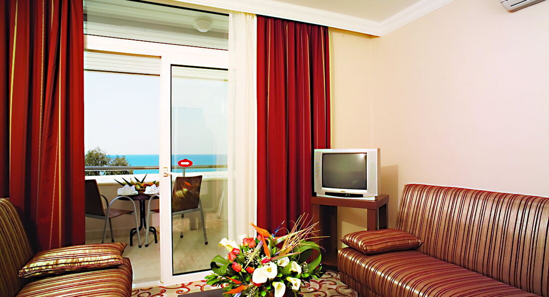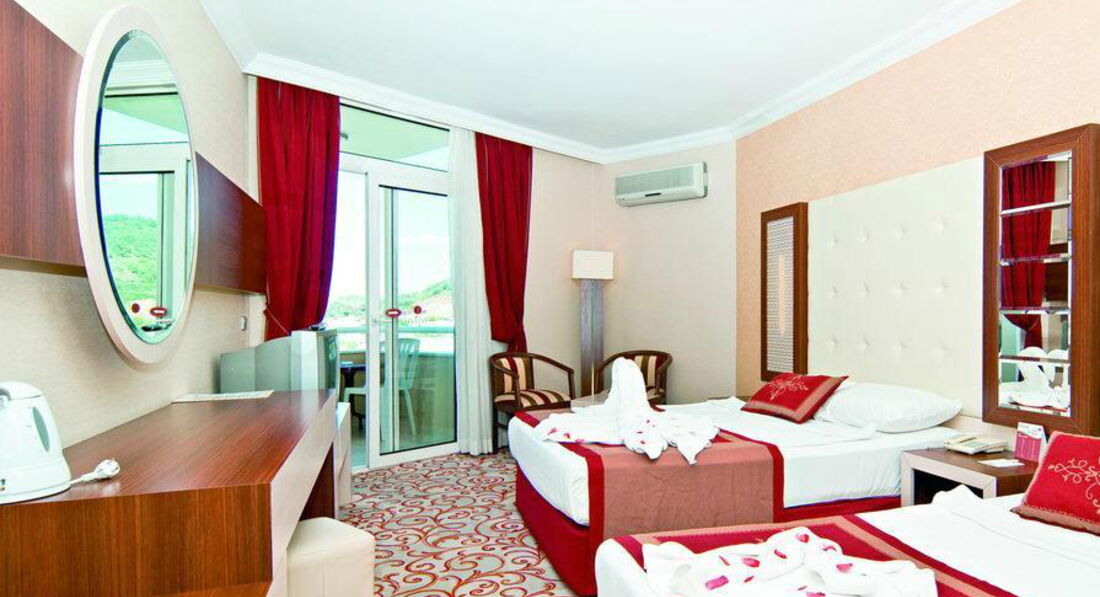 Никогда не пишу отзывы, но здесь устоять не могу. Итак: прилетели, дорога до отеля примерно 2 часа, делают остановку. По приезду заселили за 2 минуты, нас было 4, двое взрослых и двое детей. Номер небольшой, все чисто, кровати удобные, балкон с одной стороны горы, с другой море.... красота. Про еду: за 10 дней мы не успели попробовать все, вкусно, красиво разнообразно, были креветки, мидии, баранина, говядина. Из фруктов: арбузы и дыни-постоянно начиная с завтрака, заканчивая ужином, также была пару раз клубника, черешня, сливы, персики, яблоки апельсины......море фруктов. По алкоголю: пиво, вино, бейлис, коньяк -все местного производства, пиво Эфес. Вечером давали восхитительное мороженое. По развлечениям: выбирать можно на свой вкус, кто хочет просто полежать, принуждать не будут. Лежаков хватало всем. Море через переход, который выполнен в стиле галереи. Территория отеля небольшая, но все очень удобно и комфортно. Поверьте, чувствуешь себя в полной безопасности. Хозяин отеля практически всегда находится в отеле, смотрит за порядком, и интересуется всем ли комфортно и нет ли проблем. Уезжать не хотелось! Рекомендую этот замечательный, уезжать не хотелось! Вернусь обязательно!!!!