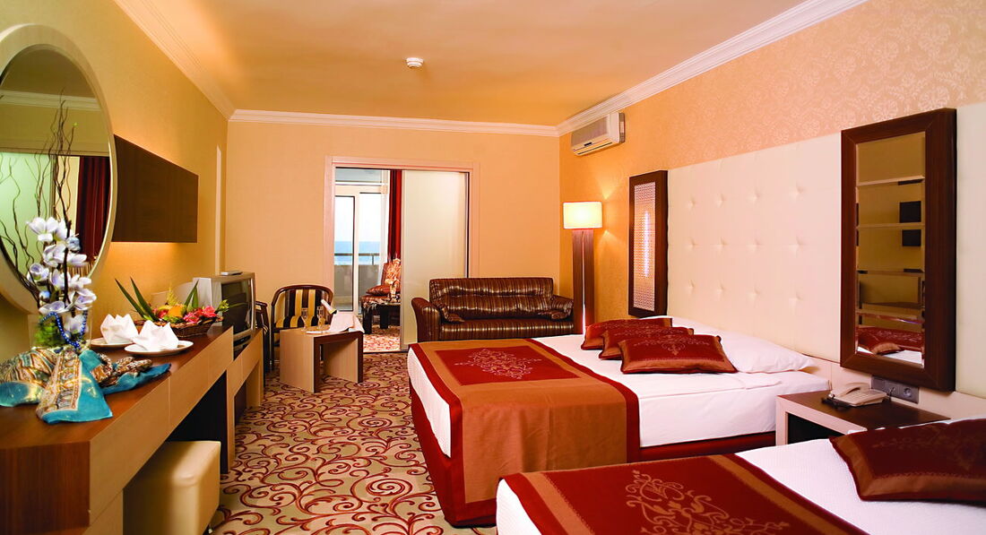 Всем привет! в данный момент мы находимся в отеле. Нас трое взрослых людей разных возрастов. Начну с заселения: раньше обозначенного срока заселили в хороший номер с видом на горы и море. Обслуживающий персонал на высшем уровне: улыбчивый, отзывчивый и всегда спешащий на помощь. Питание: изобилие и разнообразие. Территория ухоженная, много зелени и цветов. Всегда чисто и свежо. Анимация просто бесподобна: ребятки стараются и для взрослых и для детишек. Действительно с ними весело и увлекательно. Есть на территории детский городок с аттракционами и миниклубом. По вечерам шоу программы и потом дискотека на пляже. Танцуют все!!! Диджеи миксуют музыку разного плана. В целом,отель производит положительное впечатление. И особо хочется отметить СПА центр: милые девушки Людмила и Лиля проводят, расскажут и покажут все прелести спа центра. Предоставят вам тест-драйв любого из видом массажей. А потом вы окунетесь в мир хаммама с соляной комнатой, попарите тело в сауне, отведаете ароматного турецкого чая. А массажисты - это Боги!!! особенно хочется отметить массажиста Дурана и Чары(это мужчины). После их профессиональных рук и умений хочется парить, не касаясь земли. Умницы ребятки! Обязательно рекомендую всем посетить спа центр отеля и отдаться в руки профессионалов и милых девушек администраторов: Людмилы и Лили. Очень внимательные девчонки! И на последок: многие будут бурчать в отзывах, что мол, есть недочеты, отель требут ремонта и т.д... но для нас главное быть на позитиве, больше улыбайтесь и вам ответят взаимностью! Сервис радует, номера убирают хорошо! не поленитесь, поблагодарите девушек, кто убирает ваши комнаты посредством написания записочки на турецком языке.. вы потом не узнаете своей комнаты.. они творят чудеса архитектуры с постельным бельем и полотенцами! и, конечно же, пару долларов всегда имеют место быть в стимуле слелать наш отдых еще более комфортным и незабываемым! Желаю всем фееричного отдыха в этом отеле, а персоналу и хозяину дальнейшего процветания и благодарных туристов! С уважением, Нина, Людмила и Ксения (Воронеж)