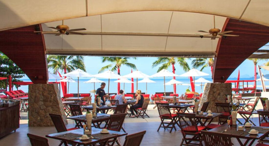 Завтраков в отеле нет, но поесть можно в ресторане около басейна и пляжа. Как таковой территории у отеля нет, дорожка от корпуса и вилл до пляжно-бассейной зоны.
