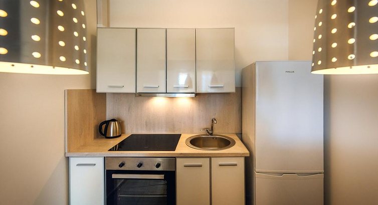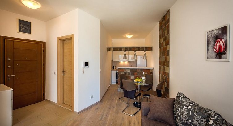 Apartments 4 (43 м2): ванна кімната, у вітальні у двомісний розкладний диван, у спальні – двоспальне ліжко, кухня; максимальне розміщення до 4 осіб