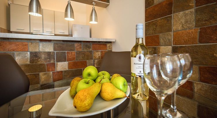 Apartments 20 (43 м2): ванна кімната, у вітальні у двомісний розкладний диван, у спальні - двоспальне ліжко, кухня, вид на море; максимальне розміщення до 4 осіб