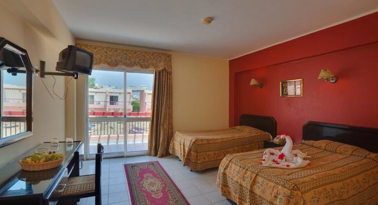 В Египте побывал впервые . Отель выбирал сознательно , так как многие мои друзья и знакомые останавливались в нём . Милый , уютный отельчик , соответствующий своим трём звёздам . С размещением не возникло абсолютно никаких проблем - сразу же , без каких-либо бакшишей поселили в нормальный номер с видом на море и пляж . ( Друзья , по моему возвращению , пребывают в глубоком удивлении по поводу этого факта и не верят ) Номер без изысков , но в нём всё необходимое - душ , туалет , холодильник , телевизор , пусть и одна русскоязычная программа , но в конце концов я ехал не в телевизор пялиться , это я и дома смогу сделать .