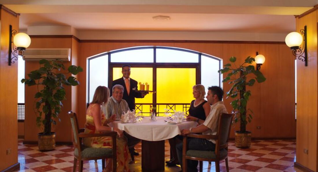 О питании.... Без изысков и особого разнообразия, но все съедобно... Завтраки как везде: омлеты, йогурты, мюсли, каша, блинчики, джемы, выпечка. Творог был только соленый. Кофе вкусный. На обеды и ужины всегда был выл выбор мясных блюд, рыба в разных вариациях, овощи нарезные, очень вкусный рис, десерты. Фруктов мало, но они были каждый день. Апельсины, яблоки, бананы и дыня всегда. Очень сладкий розовый виноград, иногда был нежнейший инжир, спелые финики. Весьма вкусные молочные коктейли и томатный сок. Вино тоже нормальное, расстроили.правда, пластмассовые стаканы, не солидно как-то... Лед привозят в отель в специальных пакетах, так что можно напитки со льдом заказывать без опаски. В общем, поварам большое спасибо и официантам тоже - за вкусную еду, скорость обслуживания и услужливость. Отдельно стоит сказать о дисциплине персонала. Никакой навязчивости к отдыхающим, никаких лишних телодвижений, выражений и взглядов. Видно, что все работники проинструктированы и боятся потерять работу в случае чего.... Мы за весь отдых ни разу с грубостью и хамством не столкнулись. Отелю за это огромный плюс!!!!