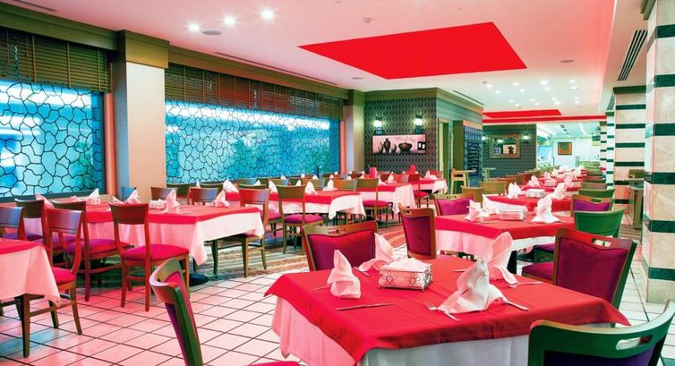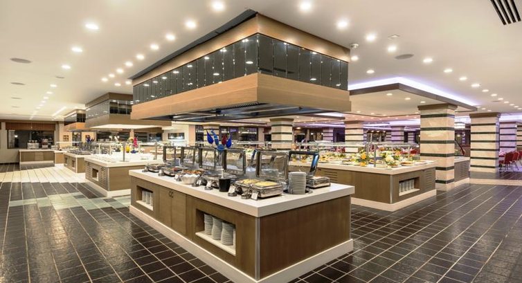 Бари та ресторани: головний ресторан розрахований на 1200 осіб (критий з кондиціонером та літньою терасою, дитяче меню, дитячі крісла, дієтичне меню), лобі-бар, бар біля басейну, бар на пляжі, диско-бар, фієста-бар, 2 ресторани A la Carte: італійська, турецька – безкоштовні, за попередньою резервацією столика. Усі бари готелю безкоштовні.