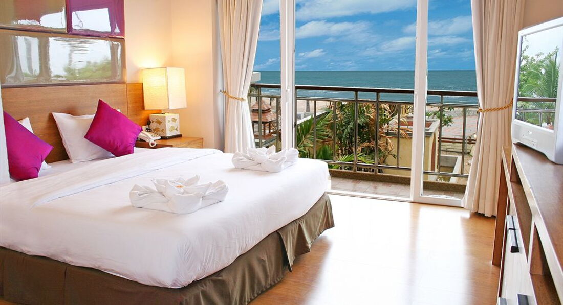 Поездка была после нового года. Летели в Таиланд в первые, с тур оператор Библио Глобус. Встретили отлично, еще в самолете выдали сим карты и все рассказали. Летели с Трансаэро при выходи из самолета дали по сим карте на которой уже был баланс 50 рублей, этого нам хватило что бы позвонить в Россию и сказать что долетели. Везли в отель около двух часов, остановились по дороге перекусить и поменять валюту. В отеле оказались в шесть вечера, на ресепшене сразу все объяснили и повели в номер. В Тайланде танцы говорят со своим акцентом на языке и было немного трудно. Заселили на 5 этаже главного корпуса. Для тройки нам обещанной было здорово. Кухня с плитой, микроволновкой, стиральной машинкой и холодильником. В другой комнате большая кровать и шкаф с сейфом. В двух комнатах стояли по одному телевизору. Большая ванная с душевой и ванной. Два балкона с видом на море. Все было чистенько и окуратно. На третий день я заметила что на занавеске в большой комнате есть пятно сантиметром пять, но я не била тревогу и не кинулась делать фото. Я приехала отдыхать! Завтра в отеле до 10 утра, но лучше приходить по раньше, тогда и сладкого можно больше попробовать. Из еды есть все и курица и сосиски соевые, омлет, сухие завтраки, молоко, котлеты, салаты. Из фруктов только бананы, арбуз, ананас. Есть и их местная еды. Горячее всегда меняется. Один из говяжий язык в маринаде подали. Наедались до отвала. Так де в самой гостинице есть ресторан но относительно дорого, есть возле берега не долетел от отеля ресторан цены чуть меньше. Вай фай работал отлично, по вечерам разговаривали по скайпу. В отеле есть компьютер где можно выйти в интернет за отдельную плату, а так же небольшой спорт зал. В котором только дети играли. В город от отеля ездите бесплатно автобус, но на него надо записаться что бы забрал увез и привез. С города уезжали на самом последнем автобусе и проблем не было, когда очень надо было в город то за 250 рублей договаривались на ресепшене и нас увозили на этом же автобусе. На ресепшене так же можно положить деньги на телефон. Отдельно хотелось сказать про гида Игоря. Я бы такого уволила точно, человек в нас видел только деньги и все. В последний день самочувствие мое было ужасное не могли до звониться не до кого, три часа ночи, а трубки не тур оператор не горячая линия в Тайланде не берет, позвонили гиду, на что он сказал: дозванивайтесь. После уже дома нам наш тур агент объяснили что когда критическое состояние надо было звонить по всем телефон. Насчет того что тайцы улыбчивые это обман, они улыбаются только если вы у них покупаете что нибудь. В общем отель тихий и спокойный, много семей с маленькими ребятишками. Ночью при открытом балконе слышно море. Если вам нужны гулянки и гул и песни под окнами, это не то место. Мы высыпались от тишины и пения сверчков. Было такое ощущение что они щебечут в твоей комнате. Живности не встречали не какой, даже маленьких муравьишек которыми нас все пугали. Постельное за 7 дней поменяли один раз, полотенце каждый день.