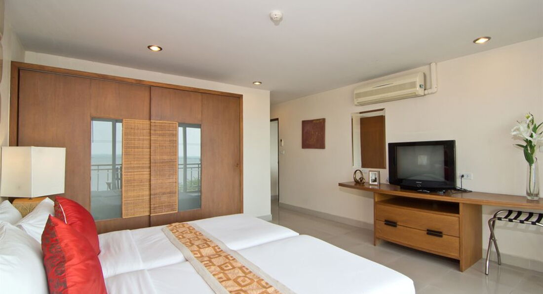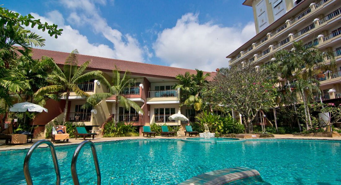 Отдыхали в Паттайе по рекомендации друзей в этом отеле. Брали номер дэлюкс с выходом в бассейн. Номер большой, чистенький, но потертое немножечко все( обслуживание хорошее, убирали отель каждый день, чистые полотенца тоже давали. В номере есть микроволновка, холодильник, телевизор плазма, довольно быстрый инет. Небольшой бассейн и выход к грязному морю((( но по пляжу вечером довольно приятно прогуливаться, два раза попали на тайскую свадьбу) если по пляжу пройтись налево минут 5-7 там другой отель, во дворе этого отеля очень приятное кафе: вкусно и не очень дорого. Огромный минус этого отеля- расположение((( далеко от мира((( не знаю кто как, а мы тук-тук так и не смогли там поймать да и страшно...куда ехать -то. Но при отеле есть автобус, который каждые два-три часа возит в центр, но его расписание довольно не удобное... Да и плохо зависеть от времени ...а на такси 200-400 батт(( в общем я в этот отель не вернусь, только из-за расположения (((
