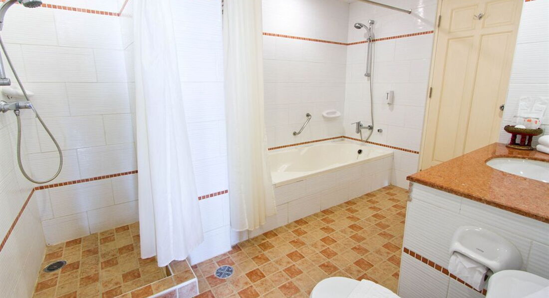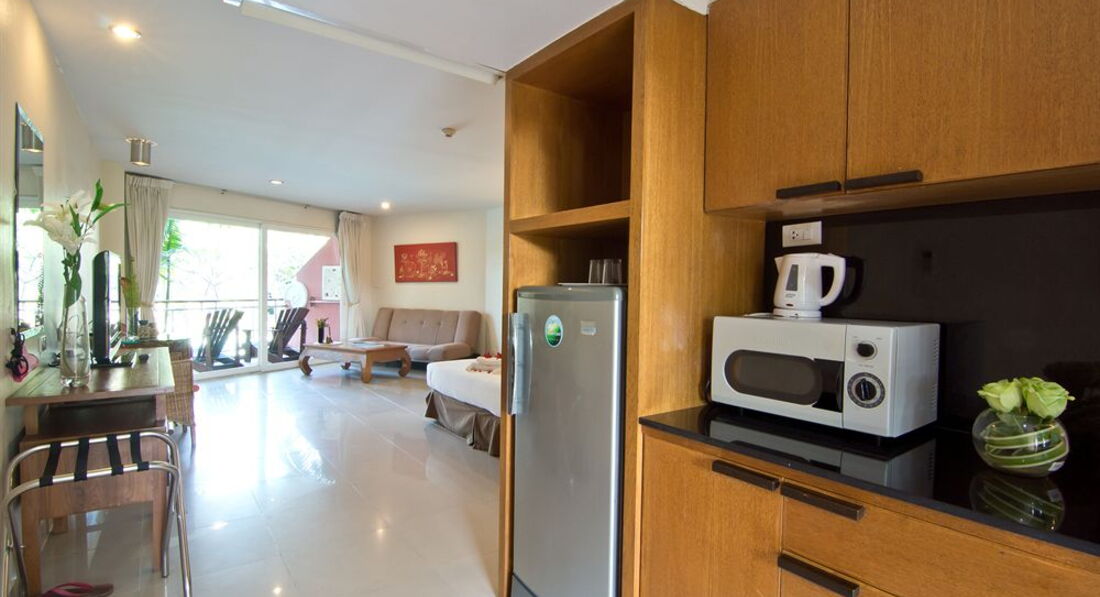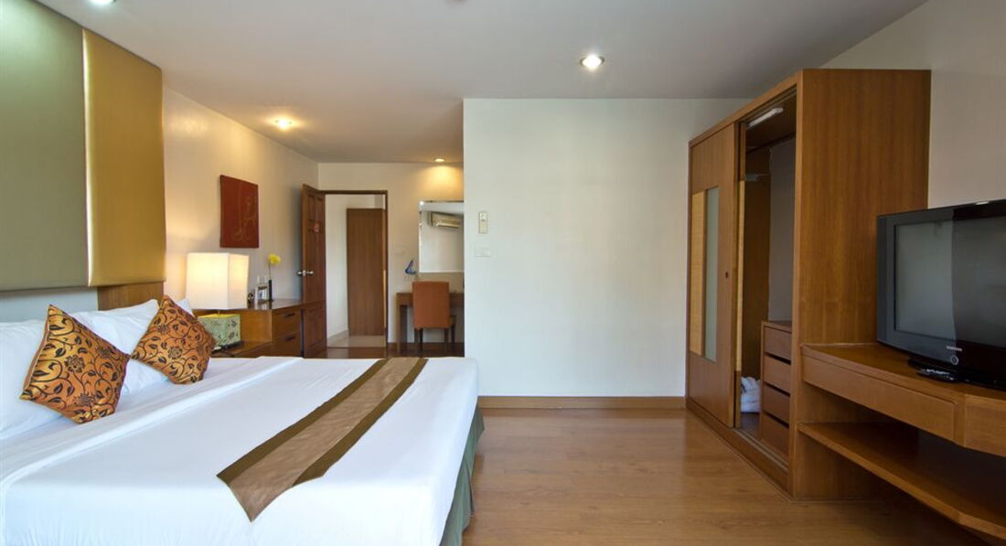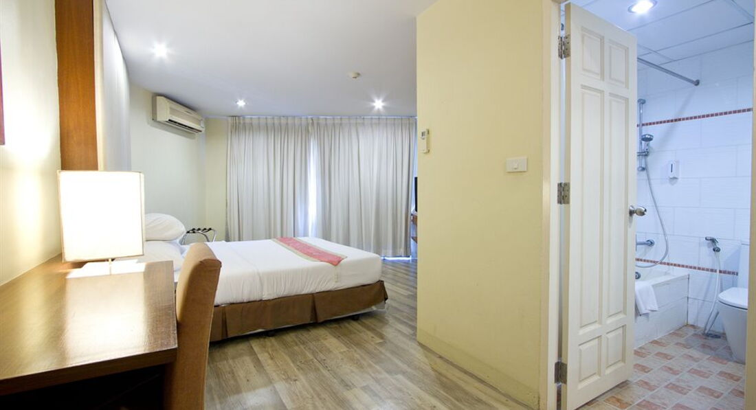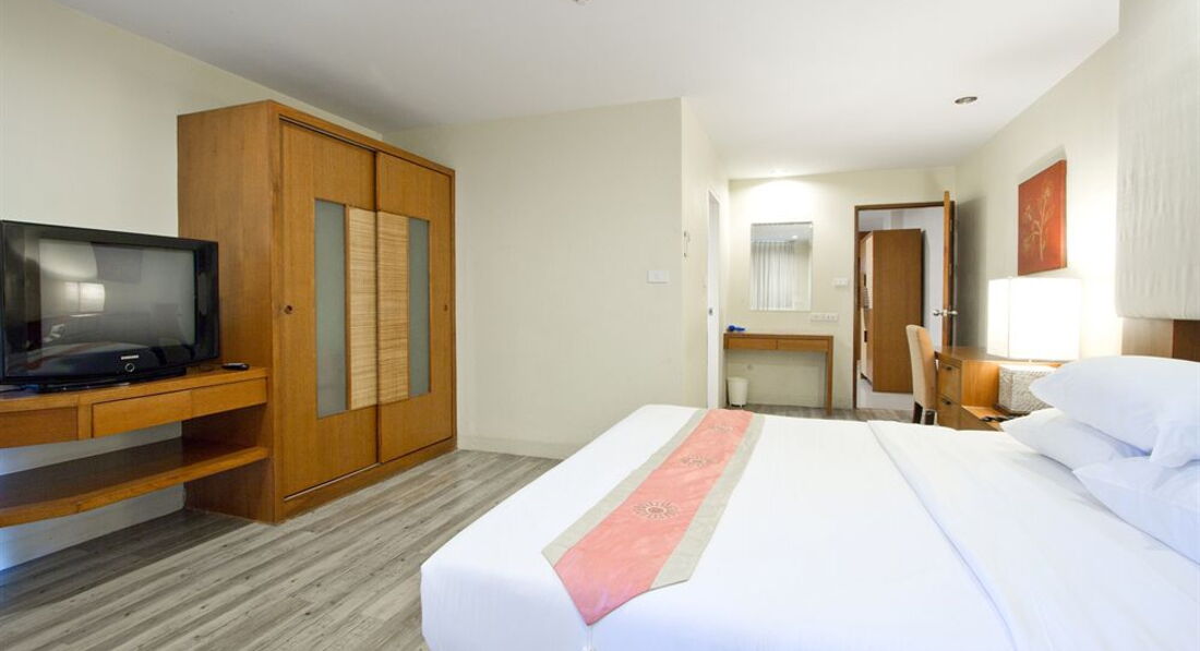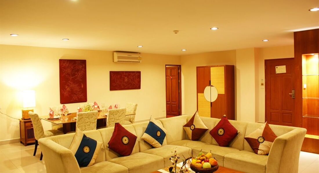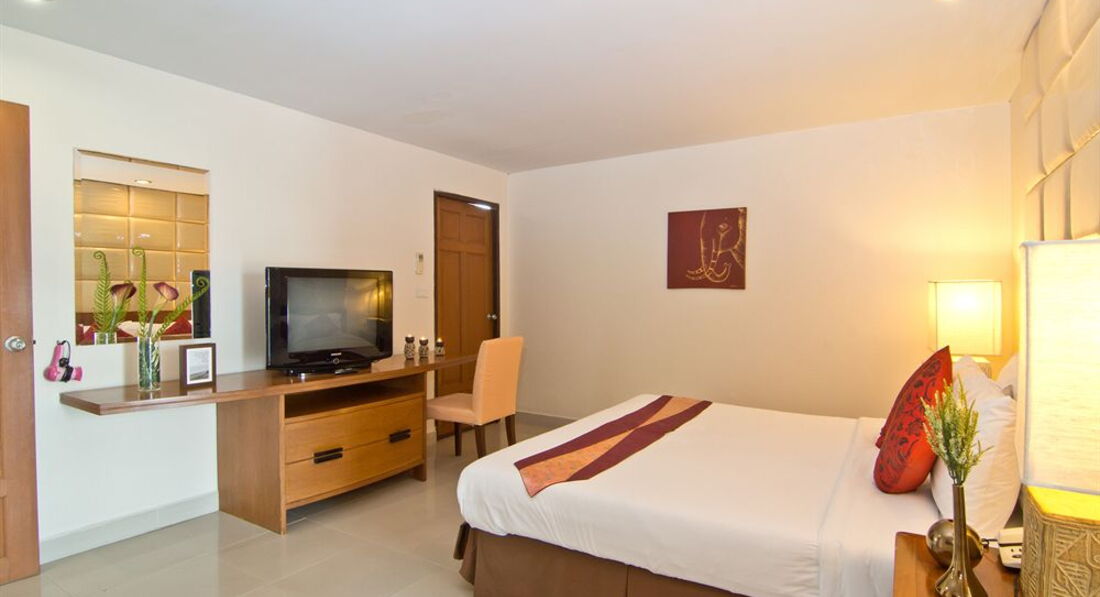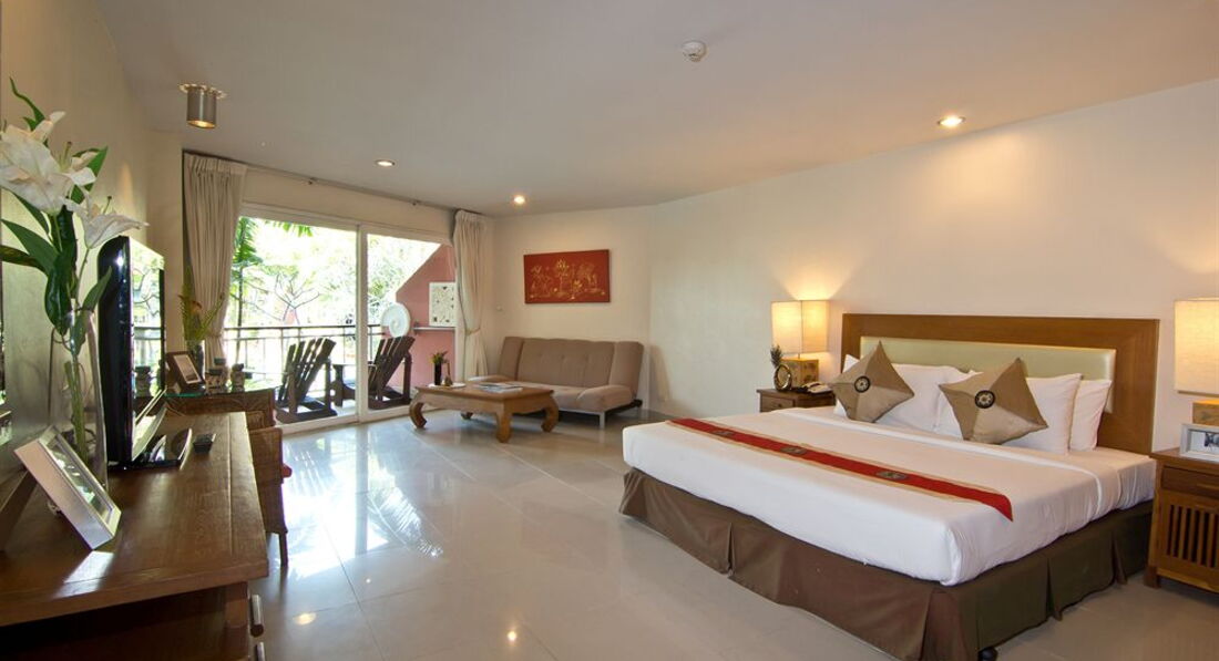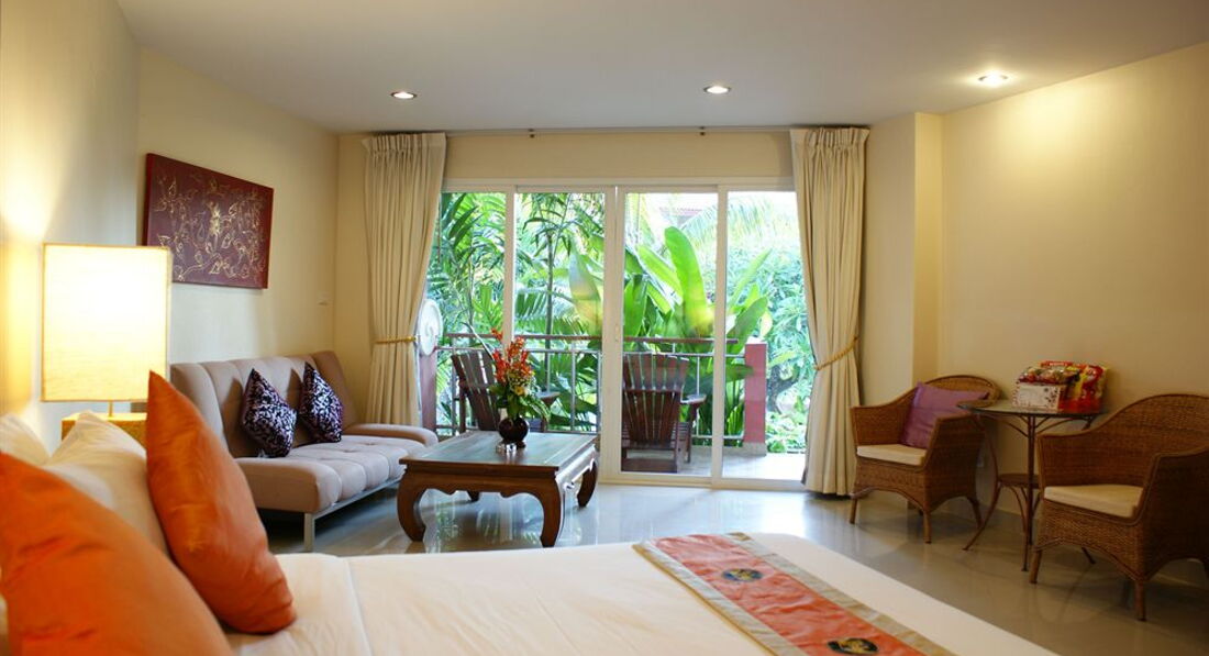 Ездили семьёй в январе 2013 года. Жили в двух номерах с выходом к бассейну. Номер огромный, большая кровать, диван, два столика, телевизор, шкаф большой, сейф, много ламп и лампочек. Кухонный уголок с посудой, микроволновкой, холодильником. Ванная неплохая, с полным набором шампуней, мыла, зубных щеток, паст, шапочек и ушных палочек). Убирали и меняли наволочки и полотенца ежедневно, раз в 3-4 дня всё постельное белье меняли также. Сам отель очень понравился, красивая территория, фигурки - скульптурки всякие, фонтанчики, цветы, деревья. Славный бассейн с джакузи и несколькими фонтанчиками. Немного огорчало, что при ветреной погоде с деревьев сыпались цветы прямо в бассейн и никто не стремился их убрать, чистили только по утрам. Столовая отличная, еды хватало и мужу, и ребенку, можно было выбрать. Бесплатный автобус в город - тоже неплохо. В отеле-тишина, порядок. Пользовались стиральной машиной что-то порядка 50 бат надо опустить). В общем, очень понравилось!