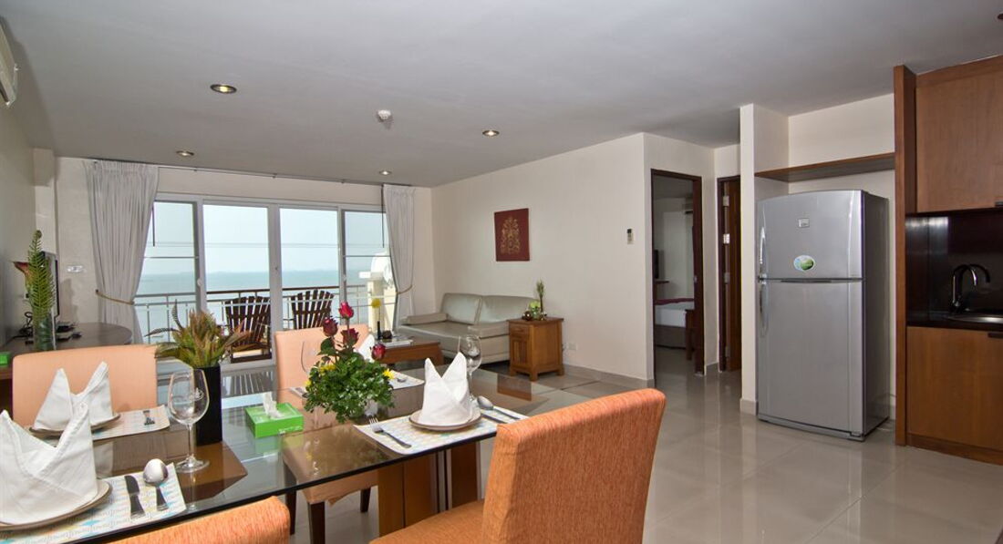 Была 5 дней в этом отеле в рамках комбинированного тура Патайя- Ча-Ам-Бангкок. Отель понравился. Номера очень просторные, кровати огромные, ванная, есть кухонный уголок - холодильник, микроволновка, посуда, чайник. Большой балкон. Бесплатно бутылка воды в день на человека плюс пакетики с чаем и кофе. Бассейн разноуровневый и красиво оформленный. Завтрак идет с 7 до 10, что удобно, если рано экскурсии. На завтраке - фрукты, овощи, омлеты, есть мясо или рыба, выпечка, тосты, джемы, отдельно стол с тайской кухней. В общем, завтраки вполне приличные. Минус один, но это минус всей Патайи, особенно северной части - море очень мутное. Из-за приливов-отливов и илистого дна. Поэтому в нем мало кто купается, все в бассейне. Патайя хороша в плане экскурсионки, а не пляжного отдыха.