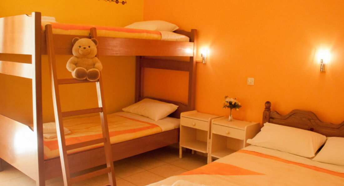 Типи номерів: Single Rooms (~18-22 кв.м) Double Room (~18-22 кв.м) Двоспальне ліжко або 2 односпальні. Triple Room (~18-22 кв.м) 3 односпальні ліжка або двоспальне та односпальне ліжка, або ж 2 односпальні ліжка та диван-ліжко (для дітей). Family 1-Broom (~22-24 кв.м) Одна кімната. Двоспальне ліжко та двоярусне ліжко або 2 односпальні ліжка та двоярусне ліжко. Family 2-Brooms (~36 кв. м)2 спальні із суміжними дверима, одна ванна кімната. В одній спальні – одне двоспальне ліжко або два односпальні, у другій – два односпальні.У номері: Балкон/тераса Ванна/душ Кондиціонер Кухня (кухонний куточок - на запит) Російський канал Супутникове ТВ Фен (за запитом) Холодильник