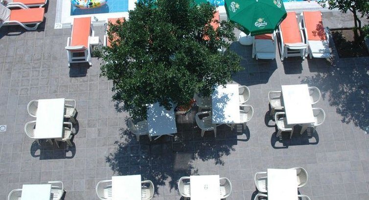Территории отеля практически нет, те бассейн и лежаки вокруг него + бар.