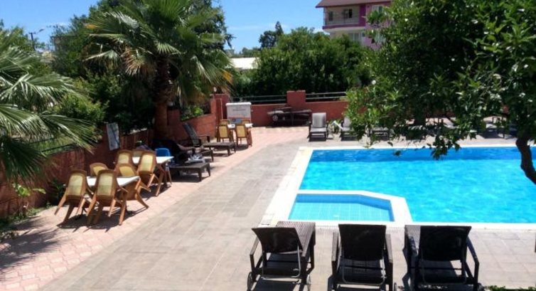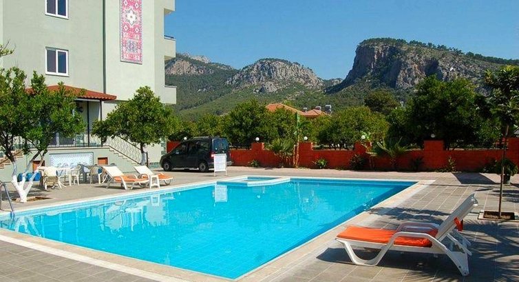 небольшой спокойный отель. еда не очень разнообразная, но голодным не останешься)) у нас в номере были 2 кровати: 1 двухспальная и одна полуторка, так что можно и втроем там жить. бар около бассейна. мы пили вино красное и раки с спрайтом. соки из коробок. иногда у бармена в холодильнике оставляли что-то свое охладиться, т.к. холодильников в номерах нет. пляж не далеко, но заход неудобный, камни большие, но есть мешки по которым можно более менее зайти. тапки не сильно помогают при заходе. рекомендую на дикий пляж сходить, там красота)) кстати, пить пиво без бумажных пакетов на улицах запрещено, могут оштрафовать, а мы и не знали. ездили в аквапарк в кемер ( он новый) там классно! и еще рафтинг рекомендую!!!