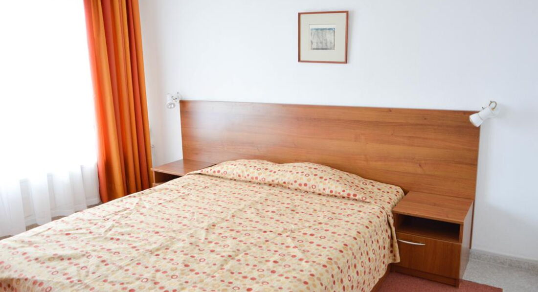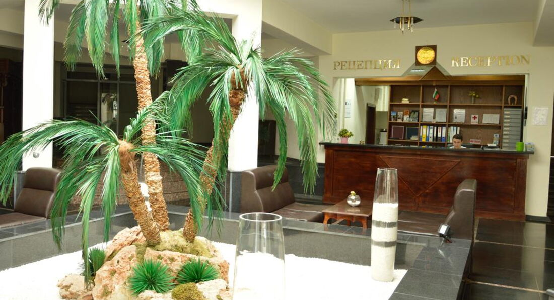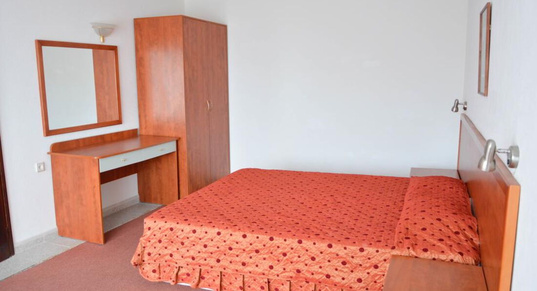 К самому отелю претензий вообще нет, вкусно готовят, еда понравилась, спокойный и тихий, для семьи с детьми как раз. Но этот отель можно смело брать тем, кого море не интересует и оно вам не нужно, т. е. купаться только в бассейне.Такие люди есть, я их каждый год вижу. Шезлонги в бассейне бесплатные, поел и тут же рядом вышел и загорай, купайся. Так же круглосуточный вай фай, скорость нормальная. Но если вы едете ради моря, то будьте готовы приехать домой с кровавыми мозолями на ногах, от сандалей, потому что до моря идти 40 минут, по узенькой дорожке, потому что все остальное - это проезжая часть, где носятся машины, как бешеные и конечно за детей страшно. Если вы взяли полный пансион, как я, то это вы привязаны ко времени обеда. Утром ушел на пляж, 40 минут с горы, и к обеду по жаре, (на солнце где то около 40 градусов, а то и больше), идешь на обед, но уже в гору. Потом опять та же процедура. После обеда опять 40 минут с горы и к ужину опять 40 минут в гору. С детьми на море, как на работу. Мне уже тяжело так скакать, но дети в восторге, все ж для них, крокодилов. Кстати, жезлонги на пляже платные. 2 лева - два шезлонга и зонтик. Так что , если хотите нормально отдохнуть на море, то запланируйте еще отдельную статью расходов на такси и на шезлонг. Второй вариант - это вызываешь такси, едешь на море, покупаешь зонт с шезлонгом на весь день, ну и конечно брать только завтрак - ужин, в отеле. Никаких обедов. В принципе туда с горы можно и пешком пройти, для любителей ходьбы, а обратно на такси. На пляже много всяких закусочных и баров, можно и молочный коктейль взять и холодный кофе и все что захочешь, и поесть прямо на пляже. Насчет алкоголя. У них ракия. Если будете брать, домой или просто выпить, то берите только заводскую, 40 оборотов. В магазинчиках вам могут предложить свойскую и даже дадут попробовать, 70 оборотов. Например, хозяин магазина может предложить. Такую брать не надо - она с димедролом, хватит надолго, но будете с нее спать постоянно. Кстати, пиво очень приятное. Вино - обычная красная кислятина ничего уникального, это не Франция. Пляжи там бардачные, можно сказать дикие, если ребенок захочет в туалет, то идите сразу в ближайший бар, там во всех барах есть туалеты, где то за 2 лева пустят, а где то и так, бесплатно. На пляже туалетов нет, то что у них называется туалетом - это железный куб, типа ДОТа, полностью закрытый, нужно бросить монетку, кажется пол лева, и тогда дверь типа откроется, так если у тебя нет конкретно этой монетки, то и не попадешь. Я сколько не бросал, дверь так и не открылась, полтора лева потерял только. Так что даже не пытайтесь, а сразу в ближайший бар, там через дорогу перейти 5 метров. Если шезлонги за деньги не хотите брать, то берите с собой подстилку, на которой можно лежать и загорать. Все как у нас на речке в подмосковье. Насчет денег, то в аэропорту по прилету сразу меняйте, ну а если не хватит, то по дороге на пляж есть эксчендьж (Exchange). Курс в июле был 26 рублей - один лев. Можно менять рубли, не обязательно доллары или евро, они все берут. Анимации в отеле вообще нет, есть маленькая детская площадка, где дети могут порезвиться. Кстати, комнаты в отеле действительно большие, у нас были двухкомнатные аппартаменты с огромным балконом. Но вид с балкона на пихту. Балкон тянется на все две комнаты и в каждой комнате дверь на балкон, т.е. балкон с двумя дверьми. Нас