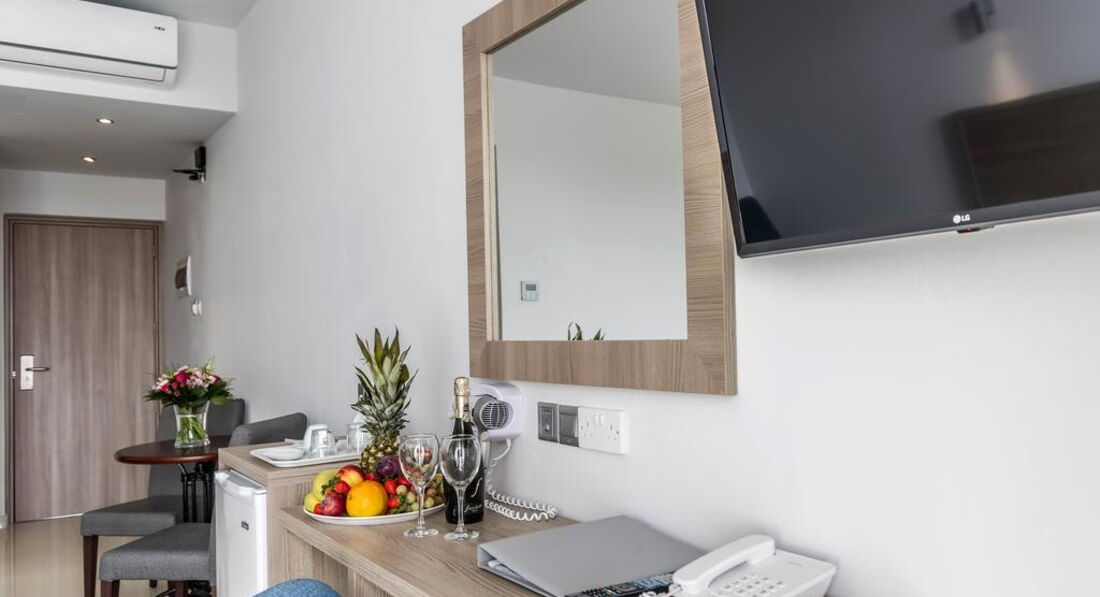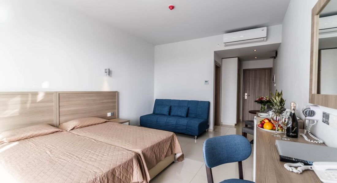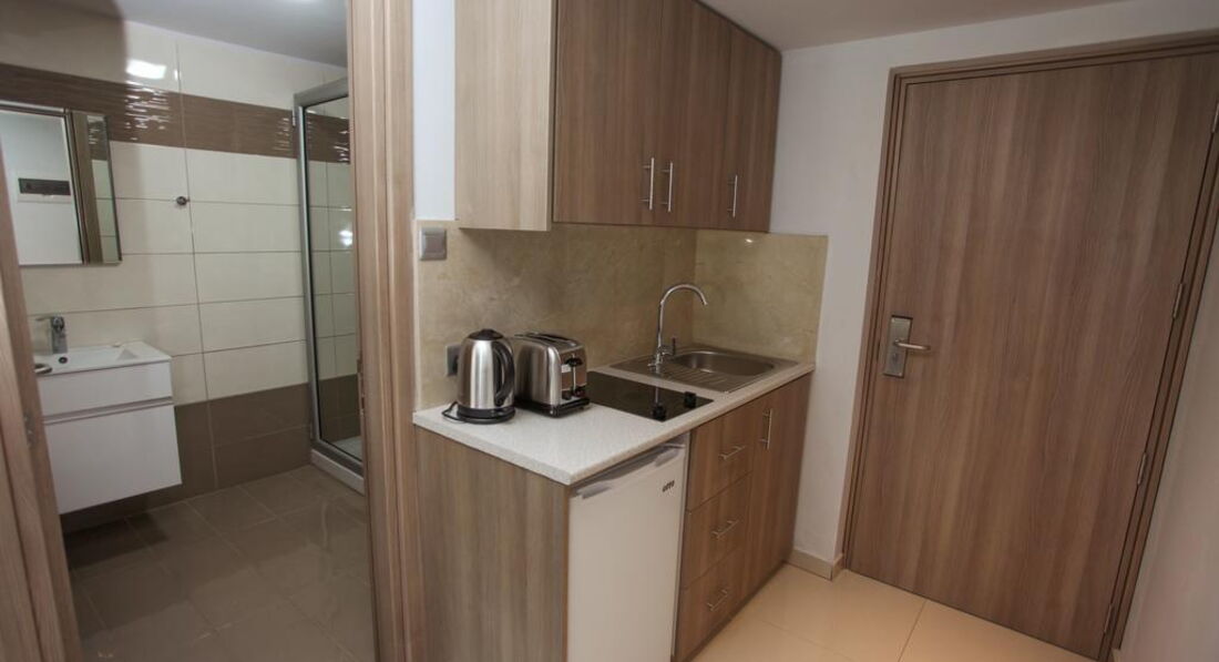 • Studio apartment (35 кв.м., макс. 3 чол.) – спальня, ванна кімната, міні-кухня, балкон/тераса, номери розташовані в дод.