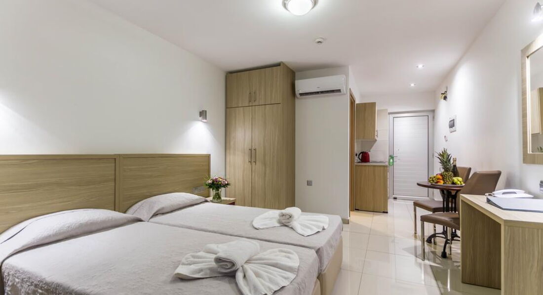 Готель знаходиться в курортному місті Айя-Напа, в 500 м від чудових пляжів району Пернера та затоки Sandy Bay. За кілька хвилин ходьби Ви зможете відвідати чудові ресторани та супермаркет, де можна здійснити всі необхідні покупки. Міжнародний аеропорт Ларнакі розташований за 46 км від готелю.
