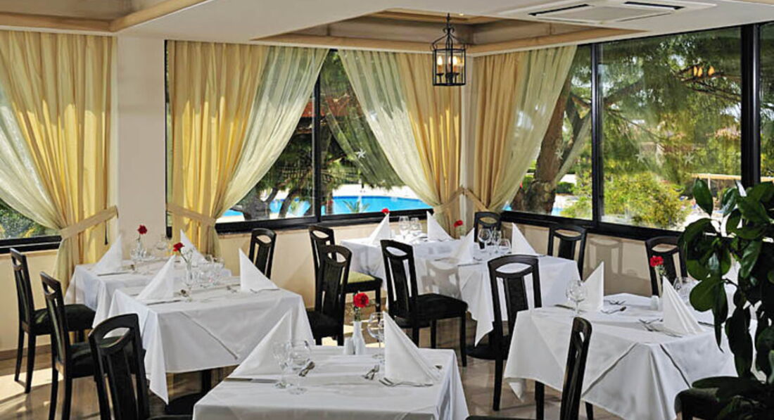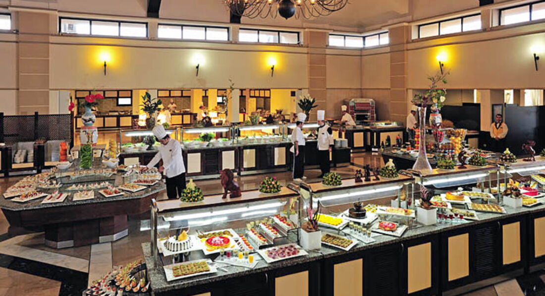 Бари та ресторани: головний ресторан розрахований на 800 осіб (критий, з кондиціонером, літня тераса, дитяче меню, дієтичне меню, дитячі стільці), лобі-бар, бар біля басейну, бар на пляжі, шиша-бар. 5 ресторанів A la Carte: італійська, турецька, рибна, мексиканський, азіатська - відвідування безкоштовно 1 раз на тиждень, за попередньою резервацією.