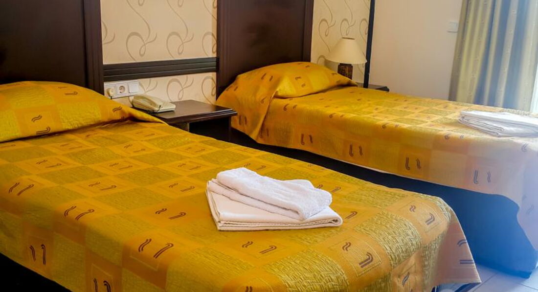 Стандартный, с двумя кроватями, ТВ, холодильник, кондиционер - всё работало исправно. Вода и холодная и горячая - в любое время. Единственная ночь, около 3-х ночи, когда я прилетел из Стамбула (брали экскурсию), вода бежала прохладная.