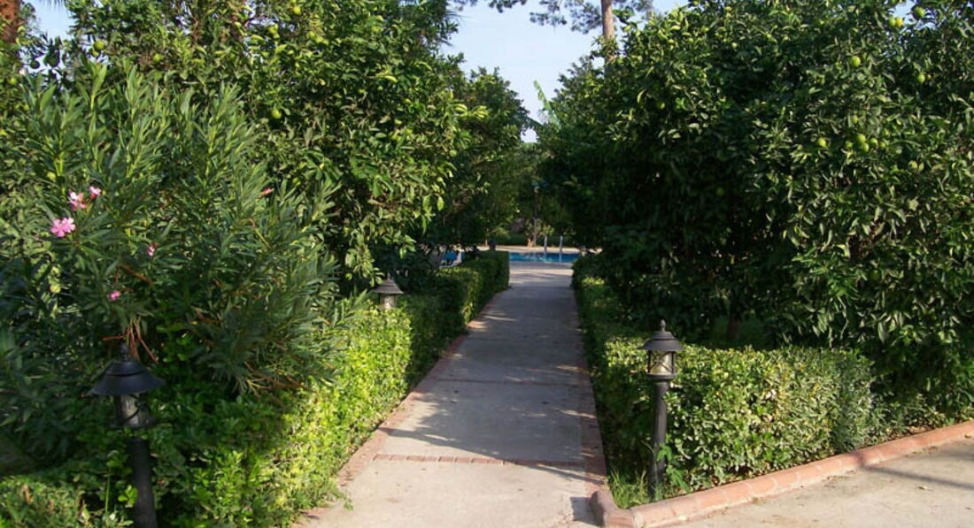 Территория отеля небольшая, окружена мандариновыми и апельсиновыми деревьями, пальмами. Бассейн с двумя горками, чистой водой (хлорку кидали каждый вечер). Возле бассейна находится бар, который работает до 22.00. Пиво, водка, текила, джин, безалкогольные напитки.