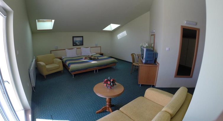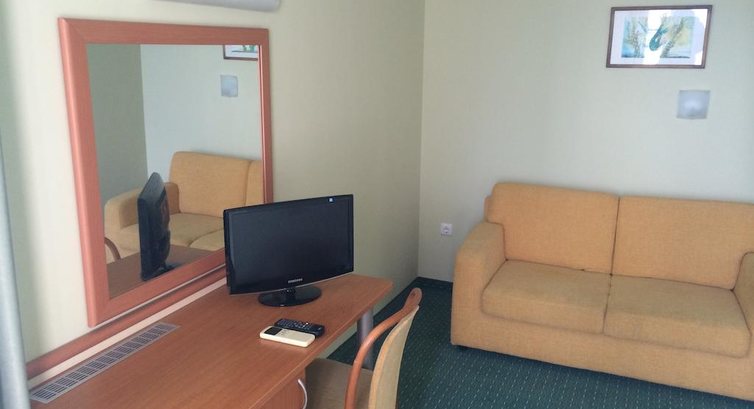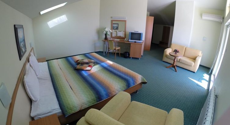 Отдыхали с подругой в этом отеле. Номер был самый шикарный полулюкс. Это, наверное, самый большой номер в отеле. Огромная кровать, где может поместиться 3 чел. Раскладывается диван. Огромная терраса с видом на море. Красиво! В отеле только завтраки, но сытные, хоть и однообразные. До моря 5 мин. Пляж Кабакум. Пишу для тех, кто невнимательно читает отзывы(как мы😅). Ехать с аэропорта на автобусе 409 до остановки(на их языке спирка) ЖУРНАЛИСТ!!! А там чуть вверх поднялся и этот отель. До Варны ехать мин.40. В Золотые пески мы ходили пешком- мин 25-30 неспеша. Вообщем, приятного отдыха! Нам понравилось