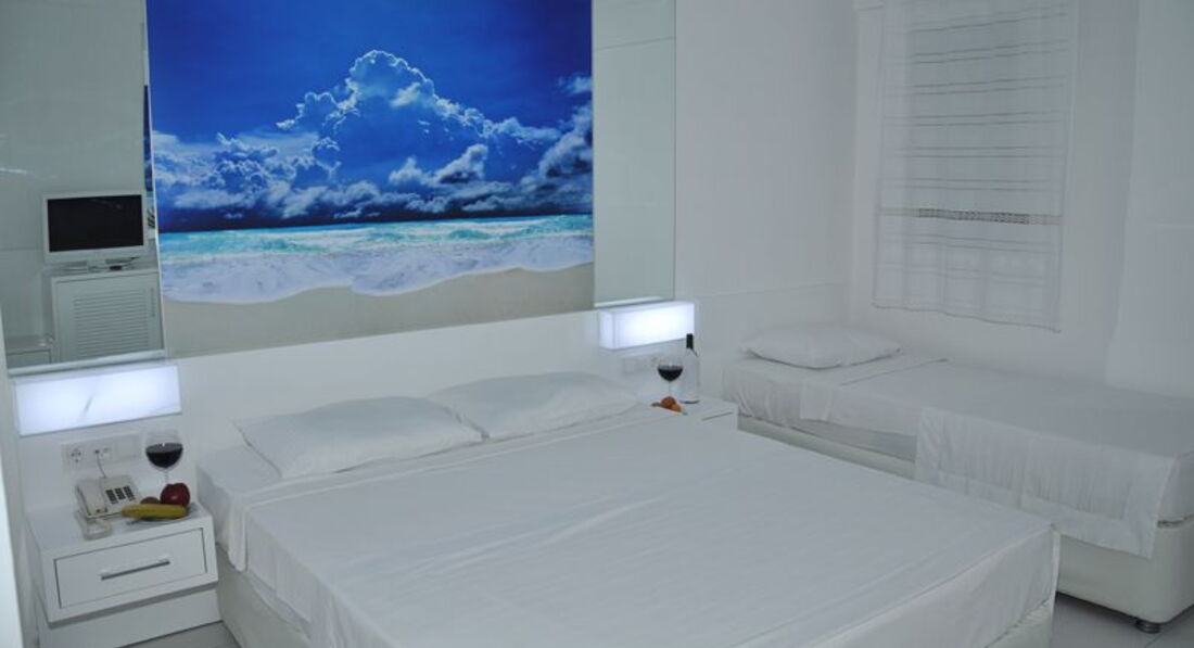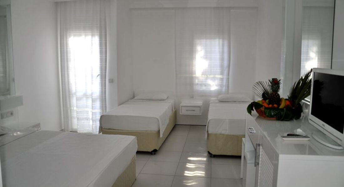 Отель небольшой, есть свой пляж, с лежаками проблем не было. Номера стандартные, кондиционер и сантехника работали. Один канал русскоязычный. Анимация не очень, только вечером и хорошо, что не долго - можно поспать, т.е. шумность отеля невысокая. Есть свой небольшой бассейн. Питание среднее - никто не отравился, готовят более-менее, но ассортимент плохой. Из мясного - только курица и непонятный фарш, ни мяса, ни рыбы не ждите. Фруктов мало - только арбузы и иногда персики. Из напитков - вода, чай, кофе, вино - все время, пока работает бар - кола, пиво, джин-тоник местного разлива. Номера убирают, полотенца меняют. На SPA не надейтесь. Отдыхающие - в основном турки и европейцы, немного русских. В общем, что вы хотели за такие деньги. Само море поинтереснее, чем в Анталии - вода чистая и мягкая, красивый вид на Грецию. В соседнем отелей (Armania) есть полноценный виндсерфинг-клуб для любителей активного отдыха.