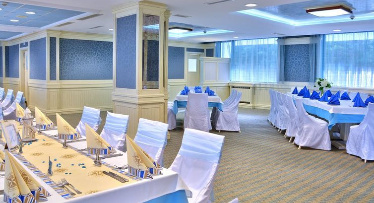 Отель расположен между морем и красивым лесом. У нас был номер с видом на море. Просто супер!!! Заселили сразу, хотя прибыли в отель в 10-00 утра. На рецепшене очень доброжелательные сотрудники. Особенно хотелось бы отметить Магдалену Желязкову. Номер большой, уютный. Под балконом переливается голубизной открытый бассейн с чистой водой без хлорки (говорят, что он с минеральной водой). Море тоже чистое, пляж песчаный, но убирается редко.На пляже лежаки и зонтики бесплатные, полотенце выдают под залог 10 левов (5 Евро). Персонал в отеле вежливый, отзывчивый, улыбчивый.Полотенца меняли каждый день, бельё - раз в 3 дня. Рядом с отелем порт. Там мы гуляли, смотрели на корабли и яхты.Питание соответствует 4 звезды. Особенно вкусные и разнообразные первые блюда. Вечером гуляли по дороге вдоль моря.Наш отель внешне показался нам самым красивым. После 22-00 вечером выключали музыку и наступала тишина, что существенно для отдыха пожилых людей. Всё хорошо, только вода в море была уже прохладная и днём дул холодный ветер. В общем,отдохнули хорошо и всем желает удачного отдыха!!!