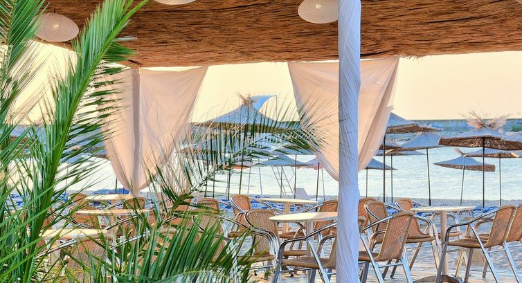 Зато само море шикарное! Могут быть волны, но жилет для детей все решает. Температура моря в начале сентября 26 градусов. Есть медузы. Не кусаются, но неприятно. Зонтики и шезлонги бесплатные но лучше придти к 8-9 и занять . На море бар бесплатный с такими же напитками и с 10 до 15 палатка с перекусами ( пицца, пицца с сыром (оч вкусная) гамбургеры, печеная картошка)