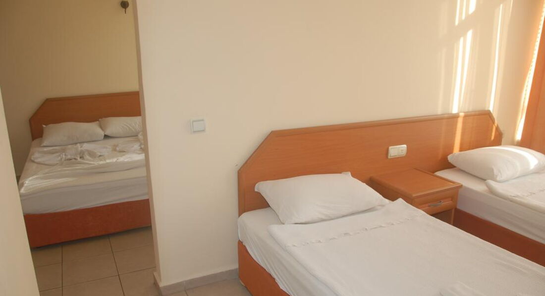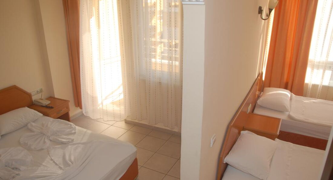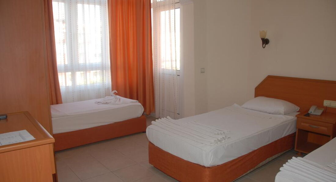 Приехали в отель утром. Ждать не пришлось, встретили приветливо. Заселили в просторный номер после ремонта с видом на море. Постельное белоснежное, тапочки с логотипом отеля, полотенца, кондиционер,душевая кабина, просторная ванная комната, фен, баночки с шампунем, бальзамом, гель д душа. Большой балкон с пластиковой мебелью.По питанию: первые два дня было действительно мало фруктов, отсуствие каши для детей, но по первой жалобе все исправили, уже на сдедующий день была каша деткам,арбуз, апельсины, никтарины и еще какие то фрукты...Нам еды хватало всегда. Ребенок очень полюбил супы от замечательного повора, который относился действительно с душой к своей работе. Персонал отличный на 5+! Все старались для нас, на удивление без лести и хитрости) Уборка порадовала, каждый день меняли полотенца и убирались в номере! Любой вопрос решался на ресепшене с Ридваном быстро и без материальных затрат, что немаловажно! ( есть опыт, в других отелях давали деньги) 2 бассейна и горка- работала по определенным часам, но по просьбе деток всегда включали ее раньше. Фаершоу очень понравилось. У подружки было день рождение, поздравил хозяин отеля и персонал - вынесли красивый торт со свечами. Отмосфера в отеле уютная. Но самое главное с каким настроением вы едете на отдых) Ну и конечно скажу про море: .... СУПЕР! Берюзовое ... очень - очень шикарное! Пляж уютный, там ребята тоже всегда помогут поставить зонт, столик .., детей угощали мороженым бесплатно и соком. Ездили в Дим чай самостоятельно ( остановка сразу возле отеля) ехать 15 мин, ооочень понравилось - красота. Там кушали в ресторане на двоих 12$. Отдых полностью оправдал наши ожидания! Еще раз спасибо Ридвану, Бармену Сулейману .))) ребенок скучает по прыжкам в бассейне вместе с вами, сказал незабываемое лето))) Спасибо хозяину отеля и его жене! Ребята вы молодцы! Обязательно приедем к вам еще!