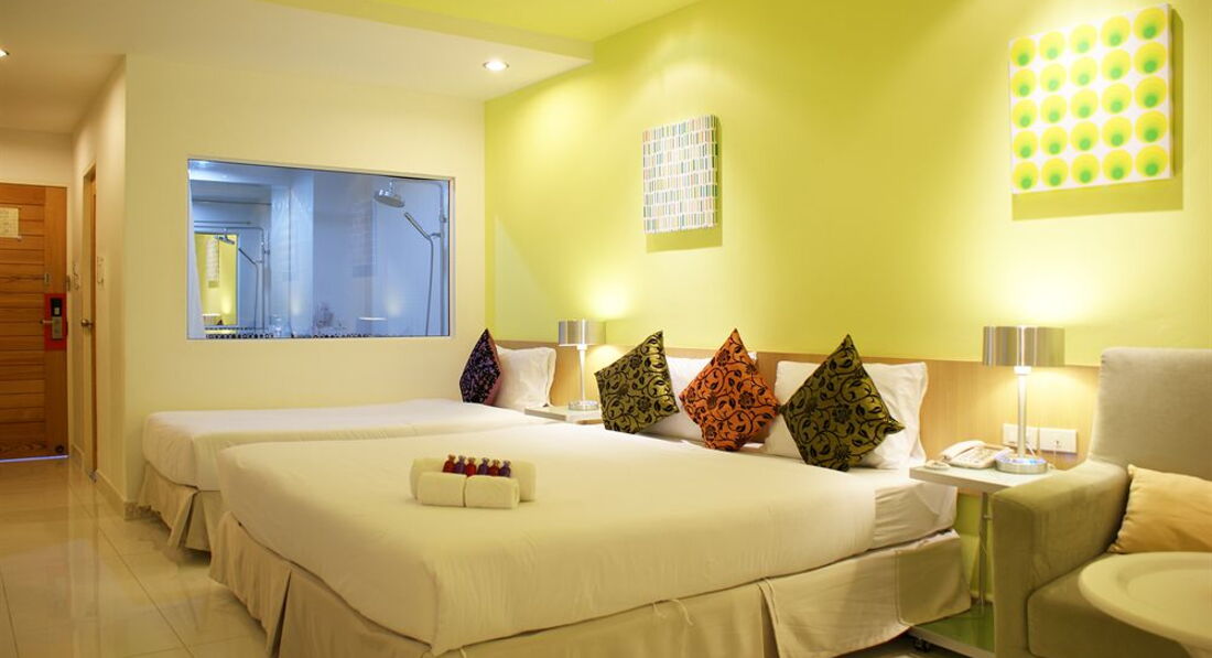 Отдыхали в этом отеле в мае-июне 2014. Понравилось все, а особенно - завтраки (лучше, чем в 4* на Пхукете на Кароне) и расположение. Бесплатный транспорт от отеля до Дельфинов и обратно, ждали 3-5 минут. Отдельно хочется написать о водителе (высокий китаец), не знаю кем он еще работает в отеле. Улыбчивый, доброжелательный, внимательный, говорил на русском! Пешком ходили до БигСи и Лотоса (рядом чайный магазинчик с обалденным чаем и кофе). Не далеко один из самых выгодных обменников. Море грязное (но это не относится к отелю), но красивый берег, можно сделать классные фото. Номер был на третьем этаже с видом на бассейн. Нас, конечно, было видно с бассейна, но все решала прозрачная шторка. Номера убирали и полотенца меняли каждый день, а белье-один раз. В номере фен, микроволновка, термопот, вода-чай-кофе-сахар ежедневно бесплатно. Если будет возможность съездить в Таиланд, то хотелось бы вернуться в этот отель!