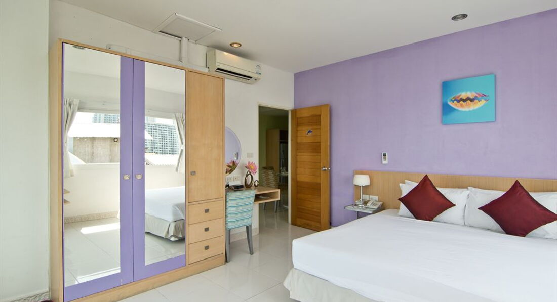 Предпочитаем этот отель если заезжаем в Паттайю и нет денег на снятие коттеджа или квартиры. Оптимальное соотношение цена-качество 1200-1400 бат в сутки в не сезон. Удобное расположение, центр не любим суетно и многолюдно, но и до центра не далеко. В большинстве случаев любим передвигаться на своих двоих, особенно вечером прикольно погулять. Поэтому равноудаленость от центра притягательна. Вонгамат вообще предпочтительнее район нежели Джомтьен (фууууууу). Рядом есть супермаркет поэтому в дни лени когда не хочется куда либо идти затаренный холодильник и мини кухня спасает (полноценный холодильник это тоже огромный плюс). Так же худо или бедно рядом есть небольшая пляжная зона (это опять же к дням лени когда не чего делать и хочется немного поплескаться в псевдо море). Басейничек какой ни какой тоже неплохо, вечерком обмыть уставшее тело сделав два три заплыва перед вечерней прогулкой приоритетно. Из плюсов есть банно "прачечный комбинат" в виде стиралки, так же удобно расположенный рядом с бассейном, пока плаваешь, пожираещь креведки с пивом твое бельишко стирается. Для самостоятельных и не ленивых путешественников считаю отель просто раем в качестве бытовых удобств, размещения и пр.