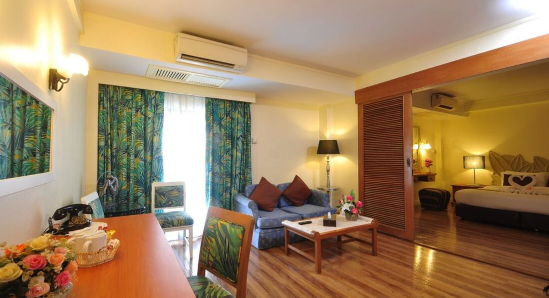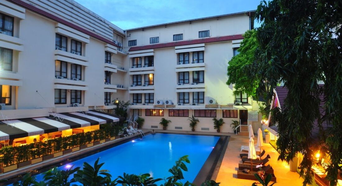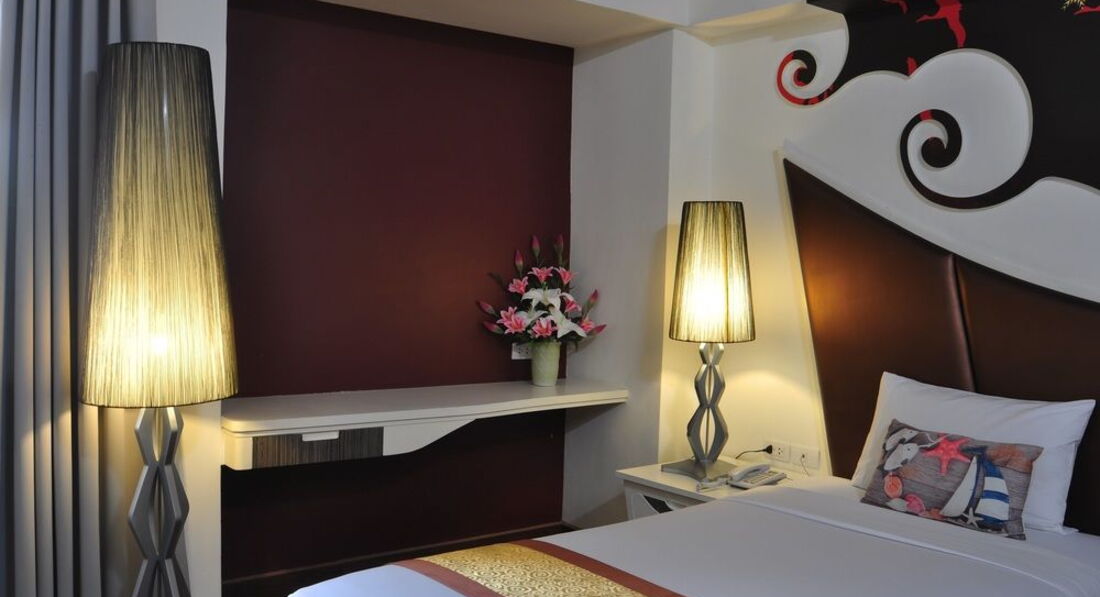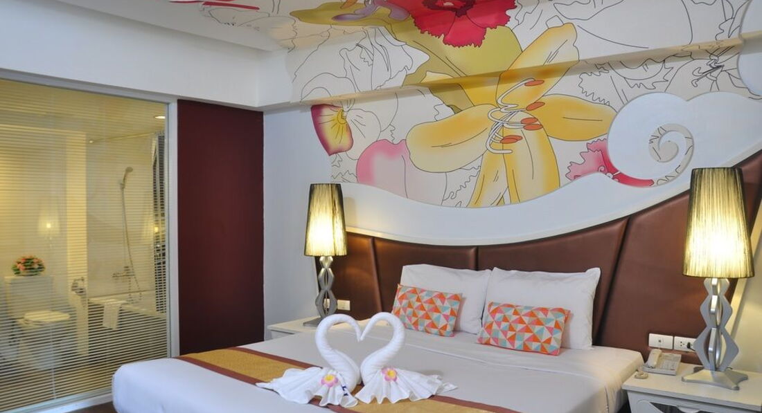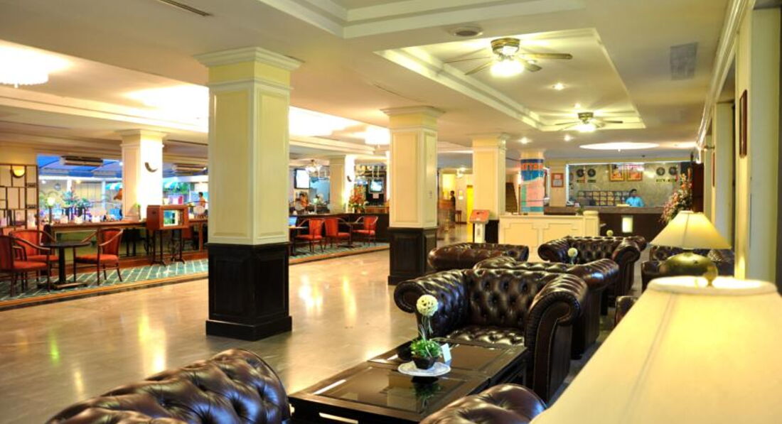 Небольшой отель в 5-7 минутах ходьбы от walkin street. Ездили с друзьями 9 человек, выбирали бюджетный отель и поближе к волкин стрит, знали, что будем только приходить и ночевать. Поселили нас не сразу, приехали в 8-9 утра, сказали, что заселять будут только после двух, но заселили часов в 12. Двух человек вообще не было в списках. Звонили гиду, выясняли, после звонка все списки нашлись. По русски персонал не говорит и по англ. тоже не особо. Поселили нас в разные номера на разных этажах. Номера немного отличались. Большие кровати, телевизор, кондиционер в номере. Ванна и туалет в хорошем состоянии все. Мебель вся старенькая, убогенькая, но чистая. Уборку делали каждый день, белье меняли тоже часто. У некоторых друзей были в номерах тараканы. Это номера, которые выходят на внешнюю сторону отеля. У всех, у кого номера выходили внутрь отеля, на бассейн, тараканов не было. Клопов не было ни у кого. Мы их очень боялись, прочитав здесь отзывы.