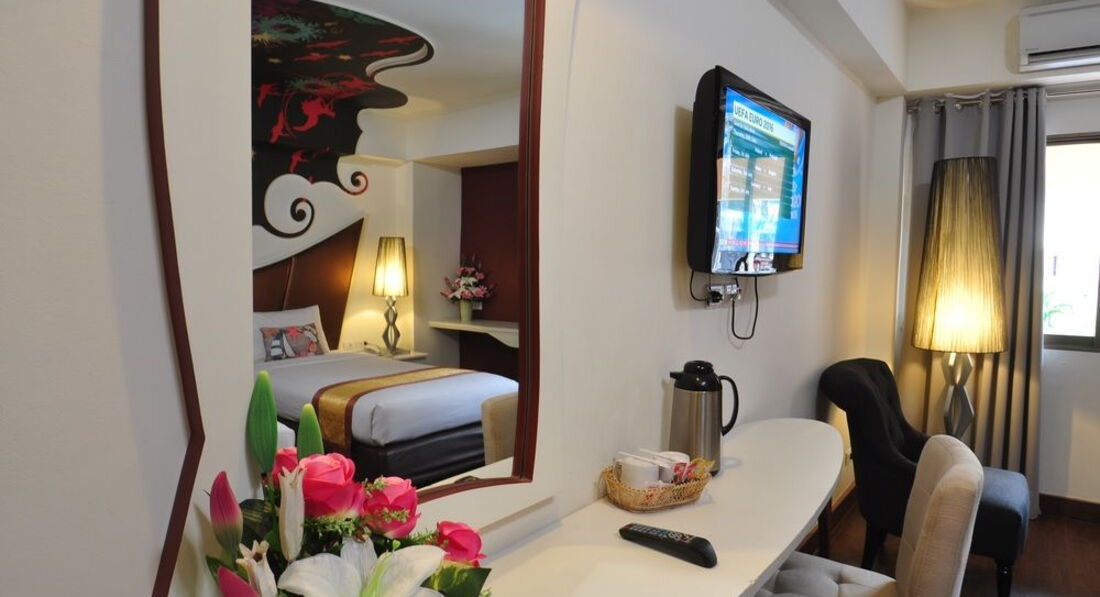 Хорошее местоположение ( пешком 2 мин до улицы баров и 5 мин до пристани) . Мебель старая , достаточно чисто. Из окон можно чуть ли не за руку поздороваться с соседями из отеля напротив.Балкона у нас не было.Много китайцев и индусов.Если вы едете путешествовать и в отеле будете только ночевать-хороший вариант