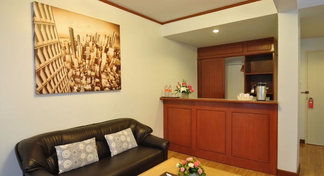 Практически повторюсь по отзыву с "ahhh" . Добавлю: Окно (на так называемый балкон) плотно не закрывается и потому свистуны паркующие автотранспорт круглосуточно слышны в номере. В ванной не всех может устроить вмонтированный в стену душ. Кстати хреново переключающий с крана на душ и потому его заранее нужно отворачивать в сторону. Набор для чая состоял из пакетика кофе и пакетика сливок, 2 пакетика сахара, и термоса! Термос вообще засада! такое впервые вижу. На сайте пишут что чайный набор (недоговаривают что чай с термоса). Однако даже если его и можно где-то обновить в течении суток- все равно это неудобно. Если бы не таскал набор советского туриста (кипятильник, чай, кофе, сахар, нож) то жутко бы расстроился. Каюсь покуривал в номере пару раз в ванной - там вытяжка плюс последний этаж. Новогодний ужин при отеле отдельный разговор (хотя можно к сервису отнести). Туроператор обязал оплатить -типа политика отеля такая. Еды конечно навалом, один сок + бокал вина бесплатно. Дальше конечно спиртное платно как и везде. Что-то там попели, потанцевали по тайски, транс побегал с фонограммой покривлялся. Лотерейка незатейливая, конкурс мистер и мисс отель. Все чинно и благородно. Короче нужно было поесть и идти на пирс, там концерт получше и салют хорошо видать. По поводу расположения то двухсторонняя улица это все таки плюс. Вышел с отеля и за 20 бат поехал или на джомтьен или на Ныклыа. Волкин вообще рядом -но это только бухать или... ну кому что нужно. Сейф на реценшен и работает в определённые часы, в сейф формат А4-не влазит! На рецепшене навязчивый персонал -один типа в номер провожает, другой чемодан тащит- оба ждут чаевые. Охранника ещё забыли с собой захватить.