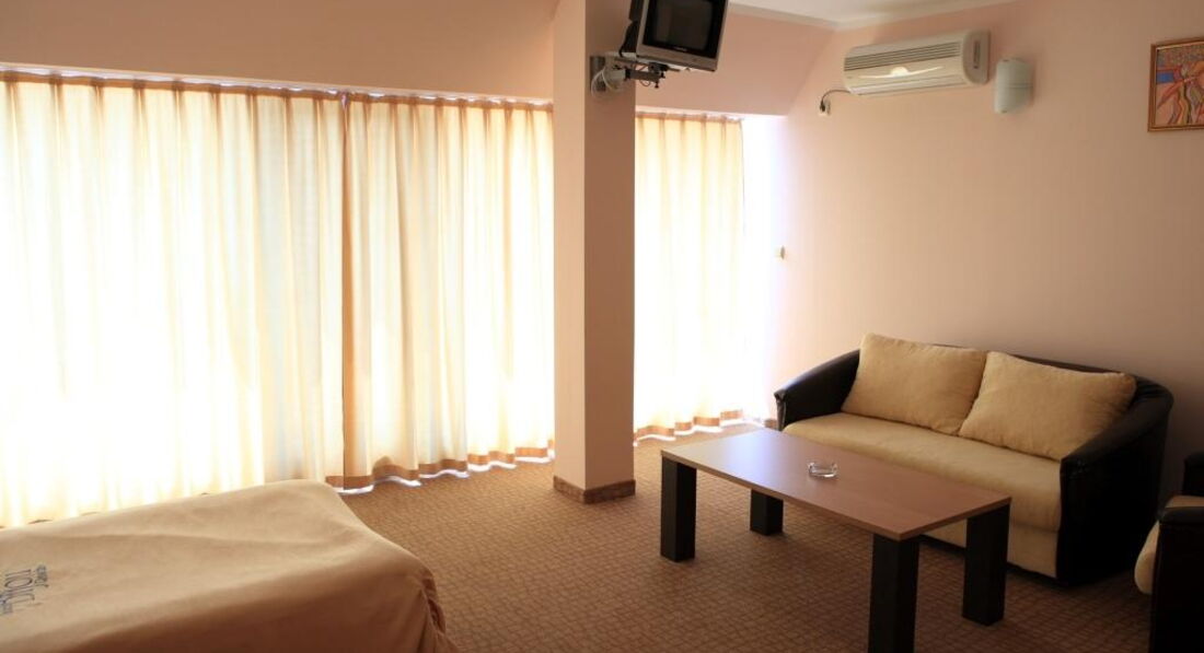 Отдыхали в июле, двое взрослых и ребёнок 3-х лет. Все понравилось.Расположение, пляж в шаге от отеля, вечером спокойно, нет шумной толпы, как в центре.Прекрасный музыкант Милко, поющий русские песни))) Но об этом отдельно.Вежливый персонал, жаль только, что в баре бассейна девушка совершенно не понимает русский язык))) но с учётом менталитета российских туристов ( я имею ввиду не особую любовь к бассейну, когда есть море), это совсем не напрягало.Еда сносная, без особого разнообразия, но всё вкусно и сытно, фруктов мало, поэтому мы всегда покупали их на местном рынке или в продуктово-овощных магазинчиках, которых полно в Равде.Для гостей отеля бесплатная парковка, что очень удобно для тех, кто любит передвигаться на авто. Мы брали машину в прокате и катались по побережью. В целом, отдыхом остались довольны.Если немного снизят цену на этот отель-приедем ещё раз в сентябре!)))