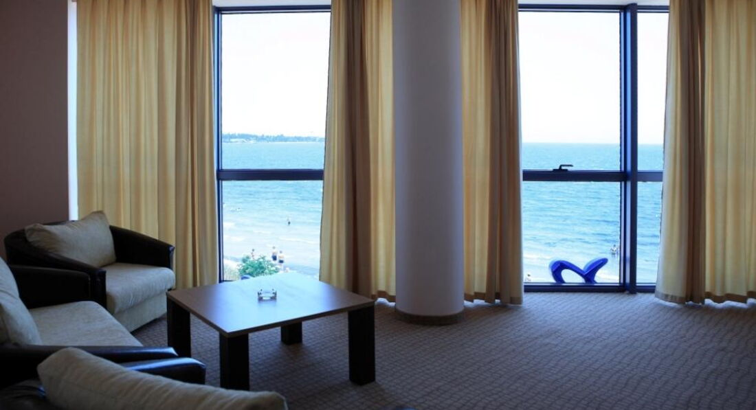 Номер попытались поменять через тур фирму-нас мягко говоря послали.Молодая и хамовитая Управляющая ПЛАМЕНА ( лет 24) просто поиздевалась над нами и потом просто пообещав , что через три дня много уедут и нам дадут достойный номер( Пламена говорила что и с четвертого и с третьего и со второго этажа-много уедет-и нам даже можно будет выбрать)-слова управляющей!!Мы на чемоданах-не разбираясь вещей ждали , но в итоге нам предлагают заведомо вариант хуже нашего( мы были готовы ждать еще)-НО слова Пламены: Или этот номер или сидите в своем!!!Что то поменять и изменить было не возможно даже через наших друзей операторов в Москве( ответили им писимом-культурно послав-что мой номер и есть вид на море и что ничего другого туристке предложить не могут!!!Сам по себе отель приятный, но душновато , наш номер был метров 20 весь. Наверно имеет смысл брать апартаменты или люксы( хоть море сможете видеть).Кормили скромно но не плохо, бассейн-скай бар в июне до 18 и весе Баста Карапузики!!!Сделали его до 23 только с первого июля((Сам бассейн малепусенький-ребенок был счастлив!!Думайте сами, хотите ли испортить настроение хамством или нет, потом эта Пламена ходила и в лицо нам смеялась, что ничего не вышло у нас - не смешно за собственные не малые деньги