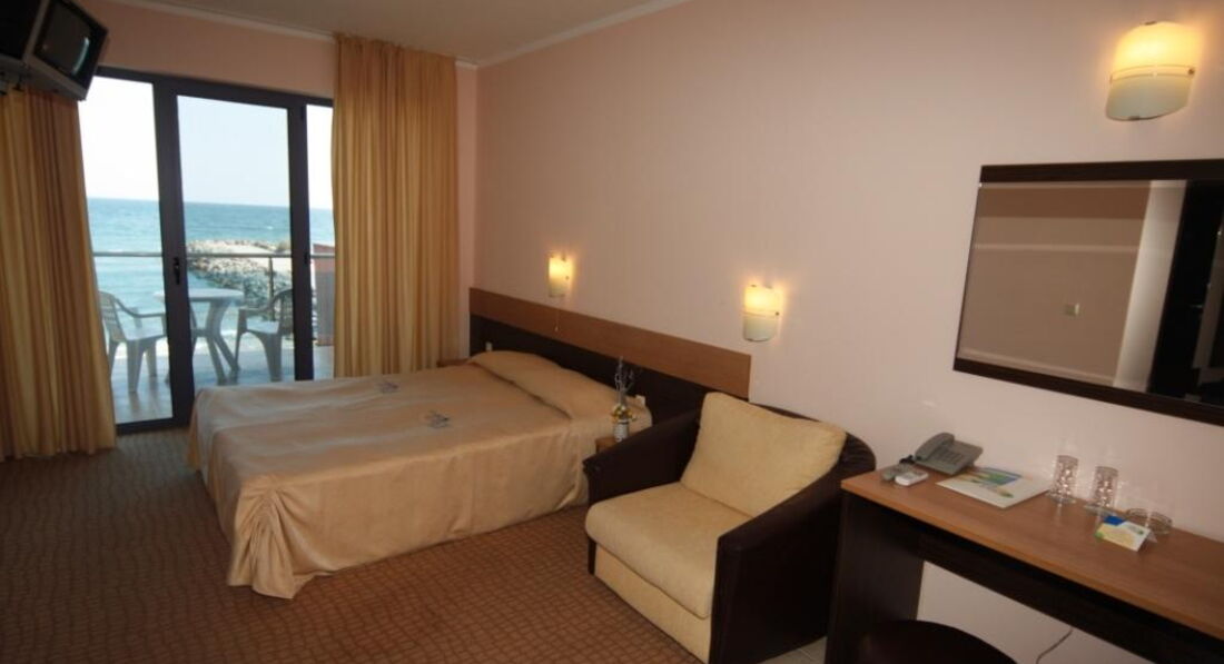 Отдыхали в августе 2014 . В Болгарию ехали в первый раз, поэтому отель выбирали по отзывам в интернете. К самому отелю никаких претензий: чисто, ежедневная уборка, полотенца меняют хоть каждый день( нужно просто оставлять на полу и их забирают в стирку). Вид из номеров, выходящих на море ,очень красивый, особенно по утрам с восходом солнца. Сам отель действительно стоит на самом берегу и когда сидишь за столиком то любуешься видом на море. Завтраки всегда были одинаковые( яичница, омлет, гренки, макароны, жареный бекон, сосиски, брынза, огурцы- помидоры, мюсли) и соки, кофе, фрукты. Ужины были разнообразные: два вида супа и всякие мясные блюда, гарниры, овощи. Всегда был выбор и для нас и для детей (3 и 9 лет). Анимации нет. По пляжу отдельный разговор: он действительно в метрах 50-ти , лежаки и зонты за плату( брали свой), есть пару не дорогих кафешек, но оооочень много народа( может мы попали на такое время) , как- будто вся Равда на одном пляже, поэтому после обеда фактически лежишь на окурках. Очень близко аквапарк Несебр( супер), старый Несебр( тоже супер). Для семейного отдыха это место отличное. Вверх по улице , за отелем уже центр Равды с магазинами, каруселями, кафе и т. д. Мы остались довольны.