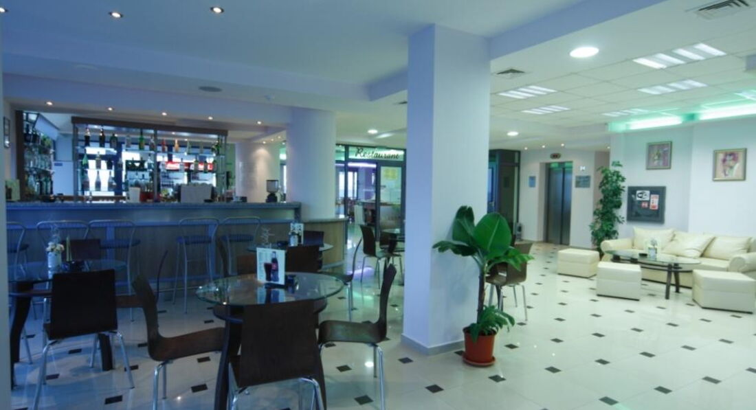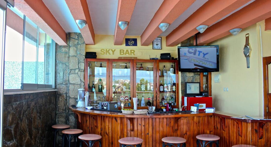 Бар в отеле — на первом этаже и есть Скай бар на последнем этаже. Милое местечко, из него выход к бассейну на крыше. Но бар на крыше не работал к сожалению((( В баре очень приятные цены. Например болгарское пиво — Шуменское — стоило 1 лев за бокал. Таких цен мы не видели нигде)))) Вкусное мороженое — мэлба (с фруктами там всякими). Но и это не главное. Главное украшение бара — официант Елена — женщина не молодая, но очень приветливая, ну прям душа отеля. Ребенок отдыхая второй раз за лето в Равде специально приходил к ней поздороваться.