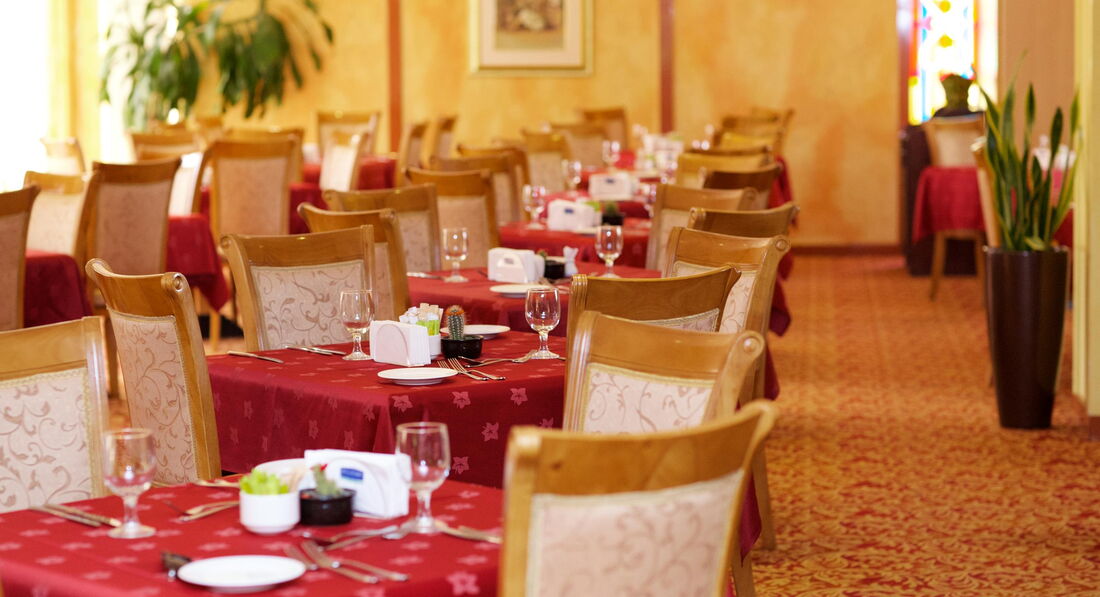 головний ресторан розрахований на 160 осіб (критий, з терасою, кондиціонований, дитячі стільці, дитяче меню)