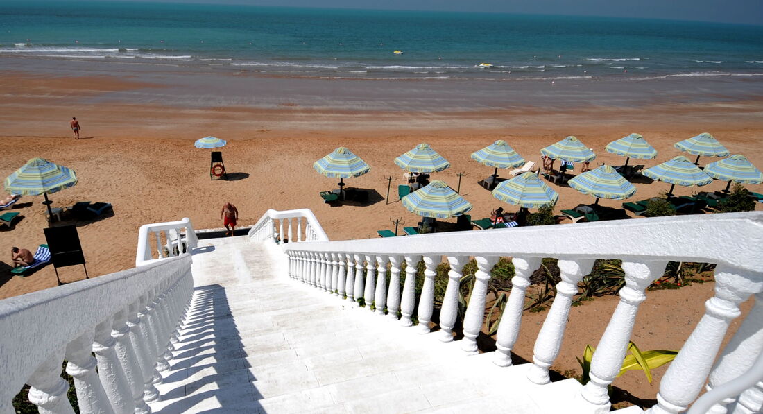 Пляж приятный, песчаный, заход в море ровный. Вода 30-31 градус. Море дней 5 подряд уходило, был отлив, утром буйки лежали на песке, оставался небольшой участок моря. К полудню вода возвращались, и приходили медузы. Медуз много, голубые, мелкие, если не увернешься - жалят, но не сильно.