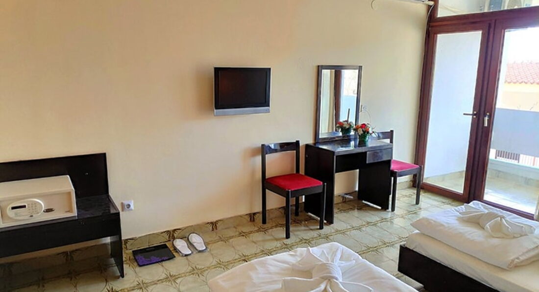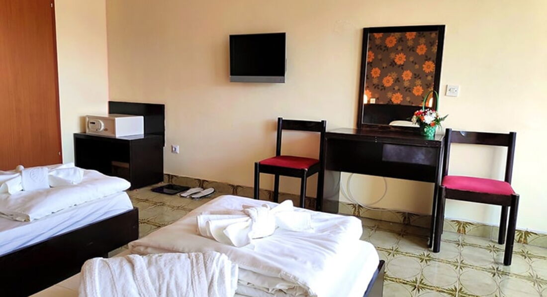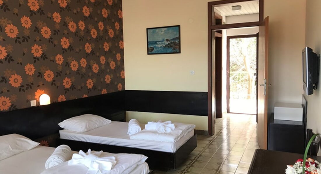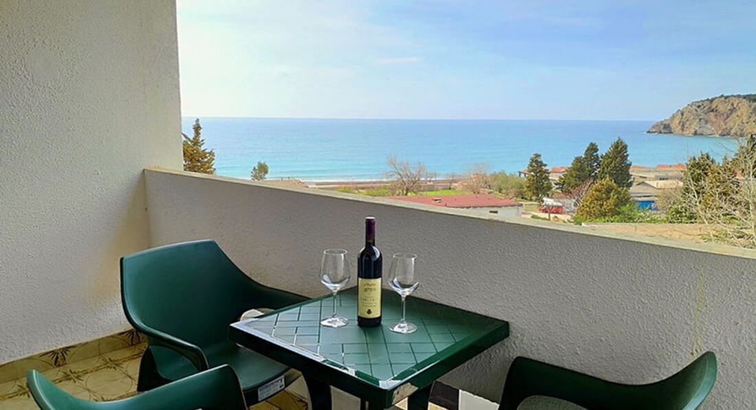 • дрібно-гальковий пляж знаходиться за 50-300 метрів, залежно від розташування корпусів