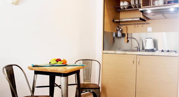 • Deluxe Double Room (20 кв. м, спальня та ванна кімната, кухонний куточок з приладдям, перший поверх, балкон, вид на місто)