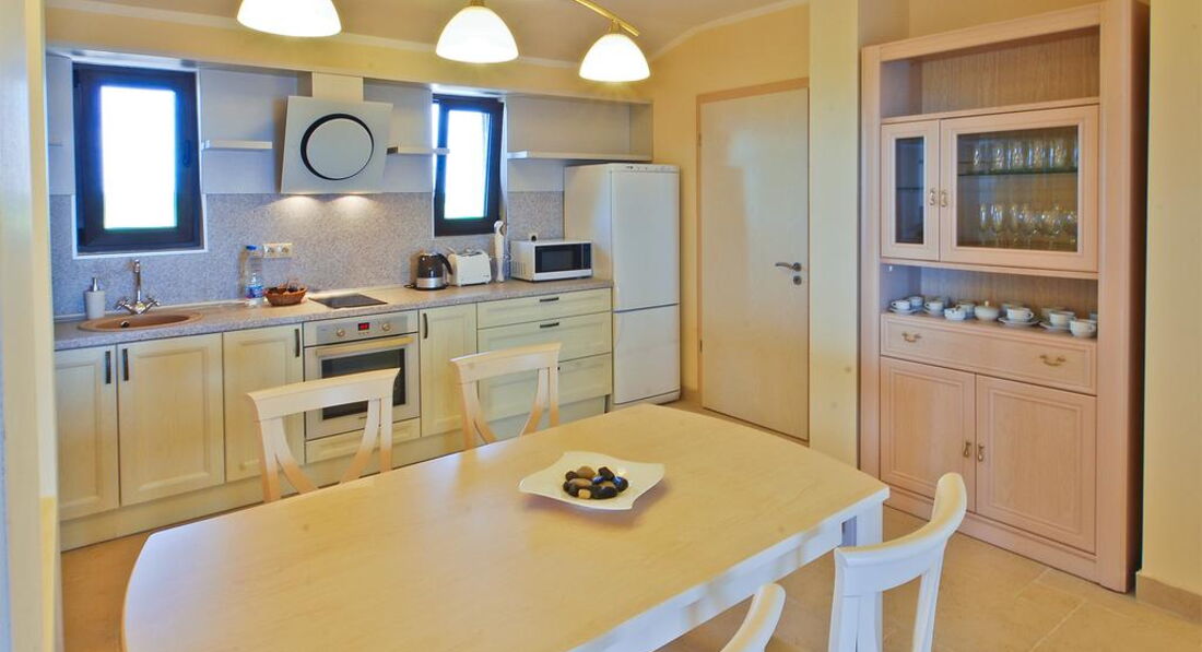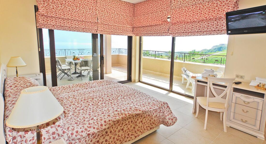 Типи номерів: Studio (вид на море; одна кімната з двоспальним ліжком або двома односпальними ліжками; розкладний диван, обладнаний кухонний куточок (плита, духовка, холодильник, мікрохвильова піч, електрочайник, посуд), обідній стіл, макс. 3 чол., 55 м2) One Bedroom Suite (вид на море; спальня з двоспальним ліжком або двома односпальними ліжками в кожній; вітальня з розкладним диваном, обладнаний кухонний куточок (плита, духовка, холодильник, мікрохвильова піч, електрочайник, посуд), обідній стіл, є міжкімнатні двері, макс.2+2 особи або 3 особи, 83 м2) Two Bedroom Suite (вид на море; 2 спальні з двоспальним ліжком або з двома односпальними ліжками в кожній; вітальня з розкладним диваном, обладнаний кухонний куточок (плита, духовка, холодильник, мікрохвильова піч, електрочайник, посуд), обідній стіл, два санвузли з душем і туалетом, є міжкімнатні двері, макс. 4+2 чол., 140 м2)У номері: