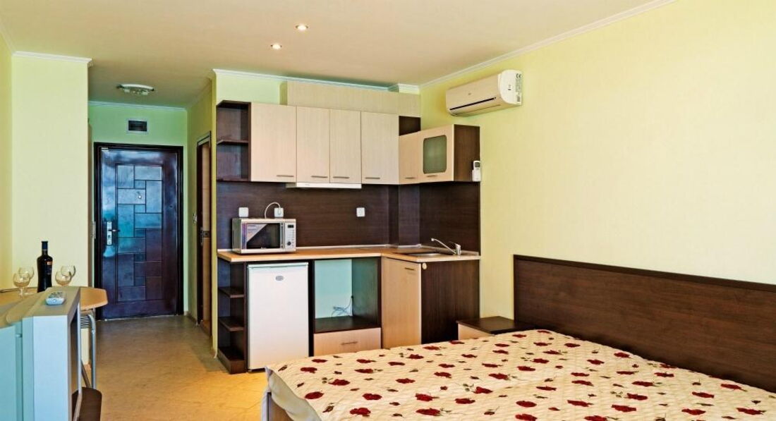 Отдыхаем в этих апартаментах в настоящее время (27.07.13). Бронировали через болгарского туроператора Китт, тут все в порядке было. Полностью могу согласится с предыдущим отзывом по поводу сервиса - его нет! И это тем более обидно, что само место нам очень понравилось: в стороне от оживленной набережной (но недалеко), прямо рядом с пляжем, есть бассейн, неплохая территория, номера с видом на море.